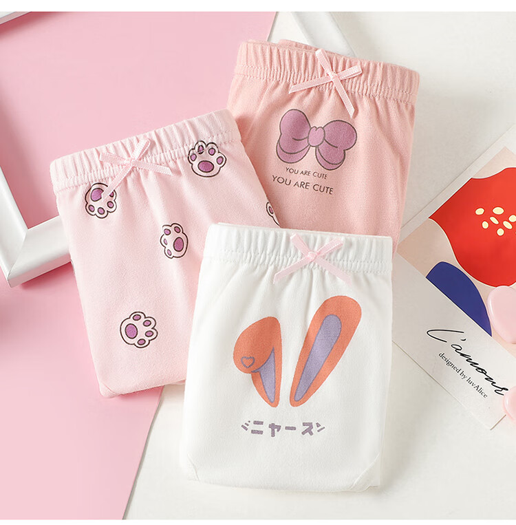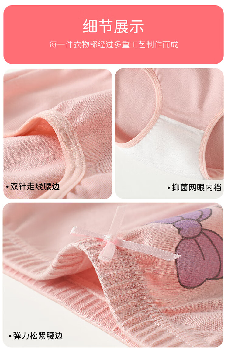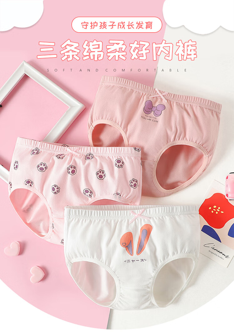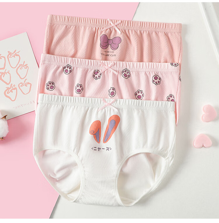 Children's underwear for girls, Class A pure cotton, 3A grade antibacterial briefs, cute breathable shorts for middle-aged and older children, strawberry, 3 pieces, 160 (recommended height 150-160)