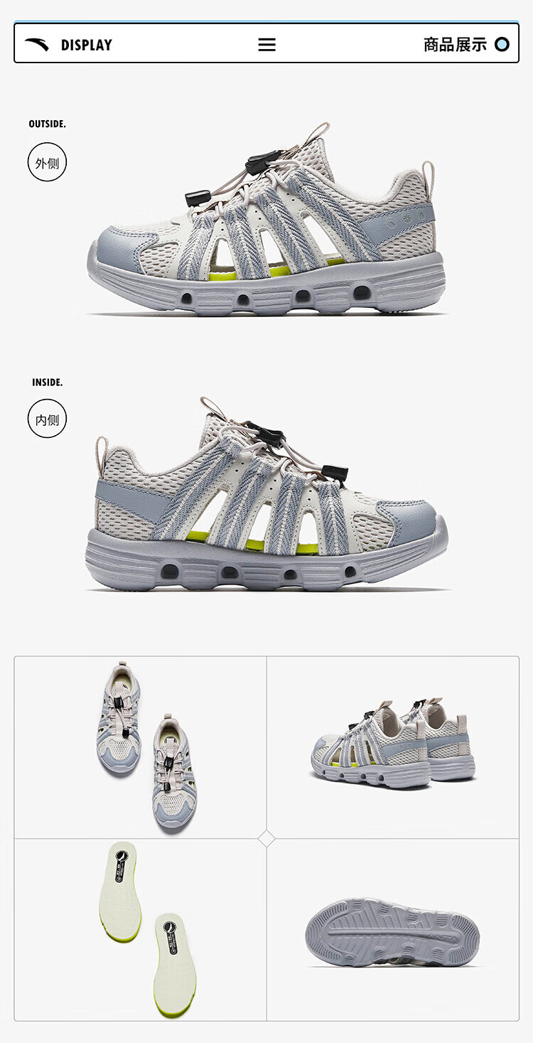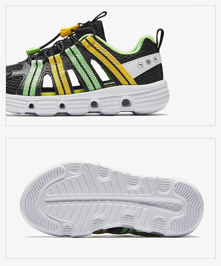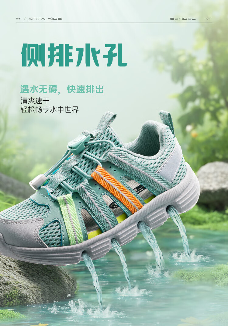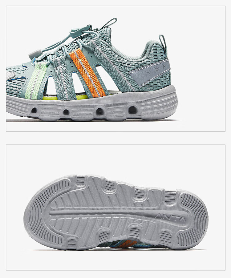 ANTA Children's Sandals Boys' Shoes Sports Shoes 2025 Summer New Outdoor Baotou Water and Land River Tracing Shoes Beach Shoes Fisheye Blue/Mud Lime-1 28