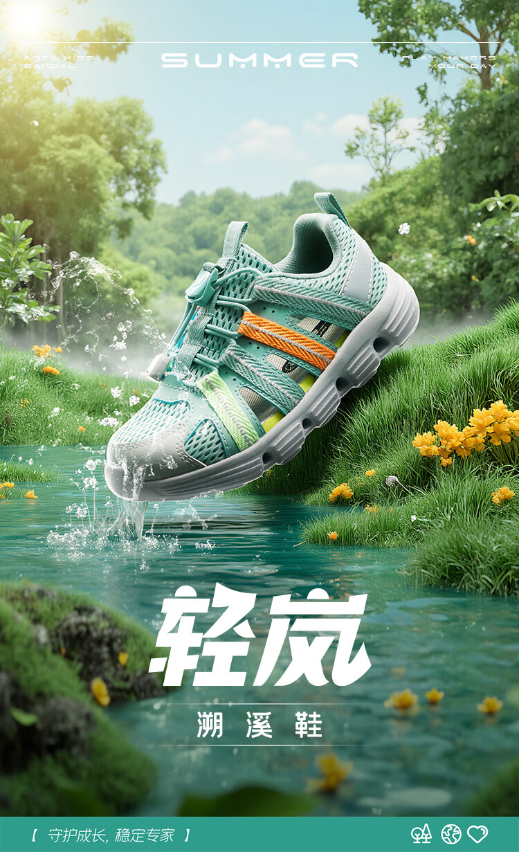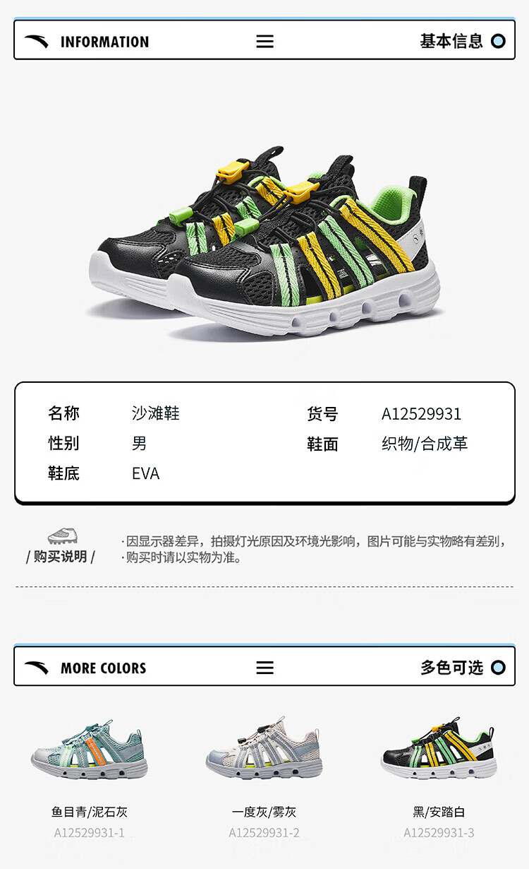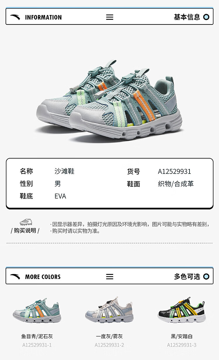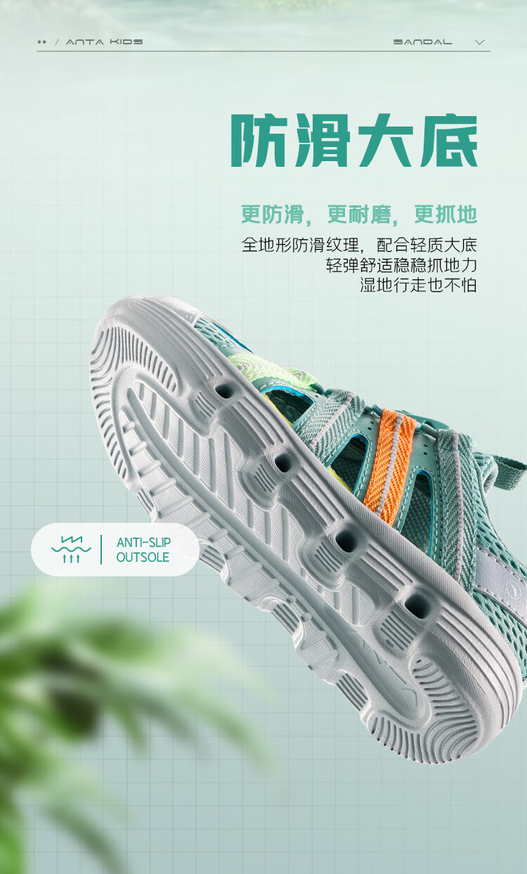 ANTA Children's Sandals Boys' Shoes Sports Shoes 2025 Summer New Outdoor Baotou Water and Land River Tracing Shoes Beach Shoes Fisheye Blue/Mud Lime-1 28