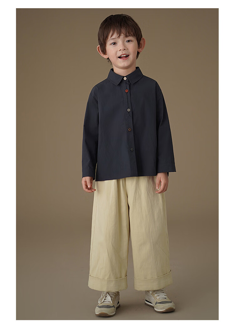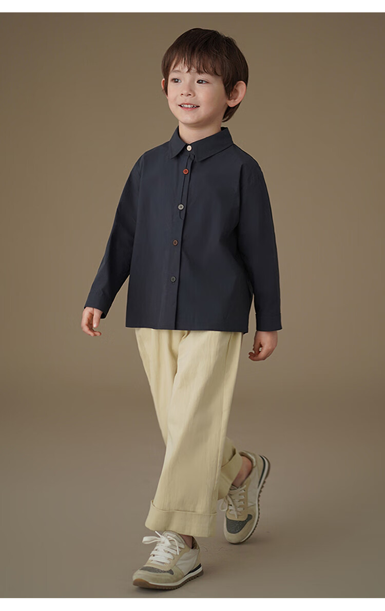 Haqi children's clothing spring and autumn children's long-sleeved shirt skin-friendly cotton Korean style spring clothing boys and girls casual tops new style navy 170