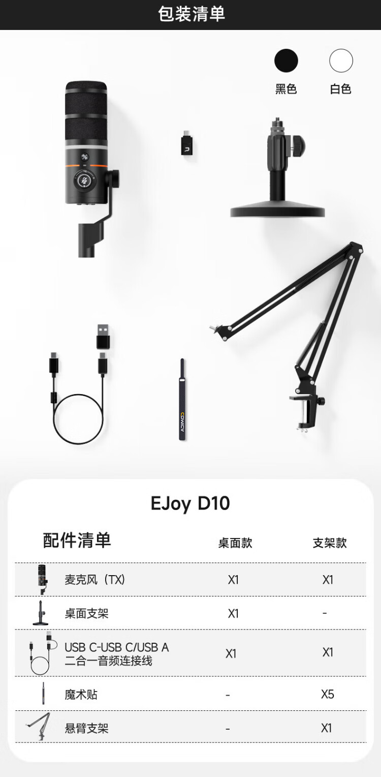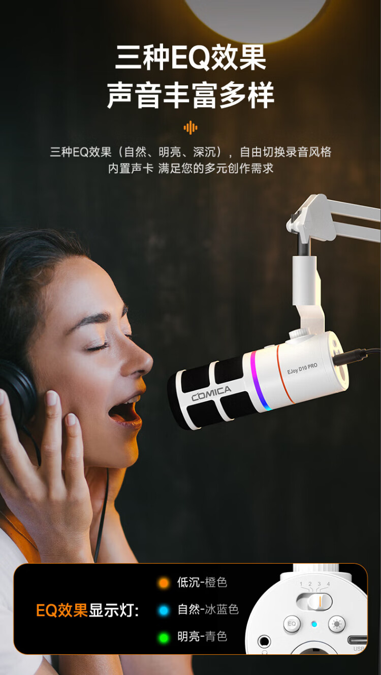 COMICA enjoys listening to D10 Pro dynamic microphone, desktop computer live broadcast, AI noise reduction microphone, built-in sound card, recording karaoke dubbing, game video, mobile phone radio microphone, wireless wired D10 Pro white, newly upgraded wireless desktop model, official standard configuration