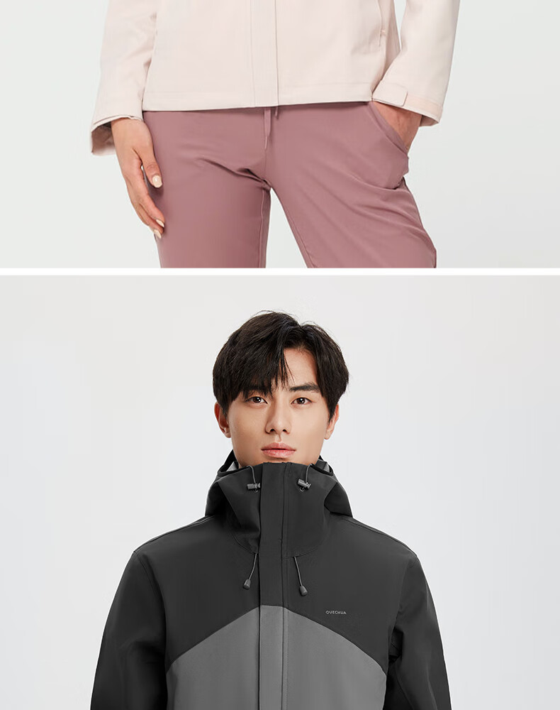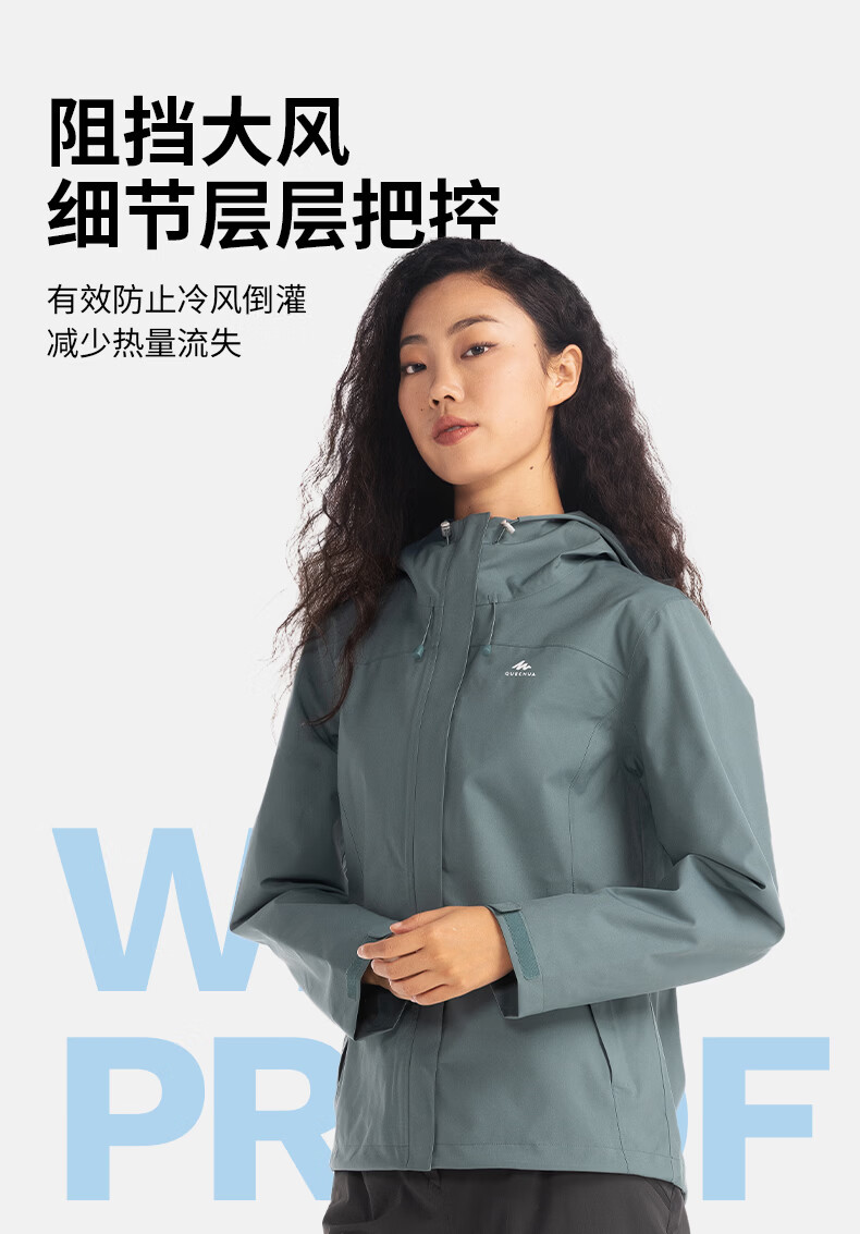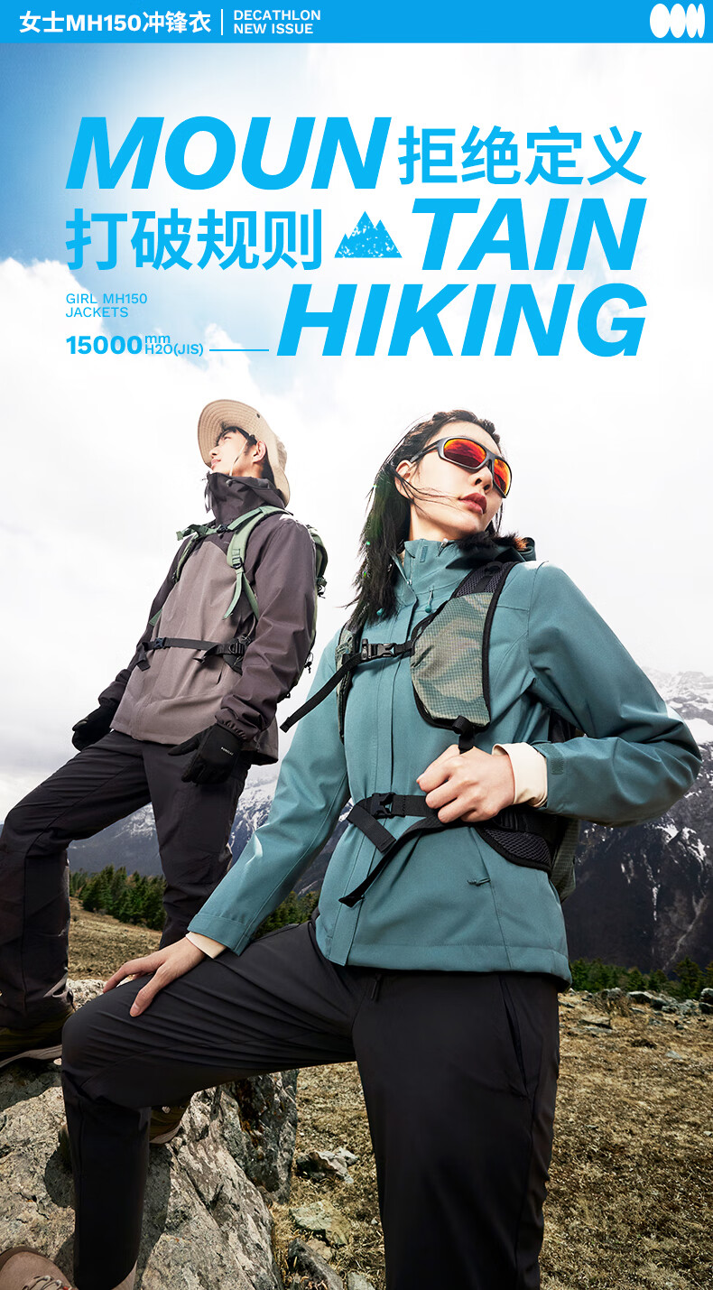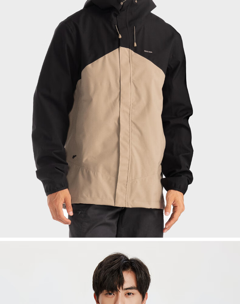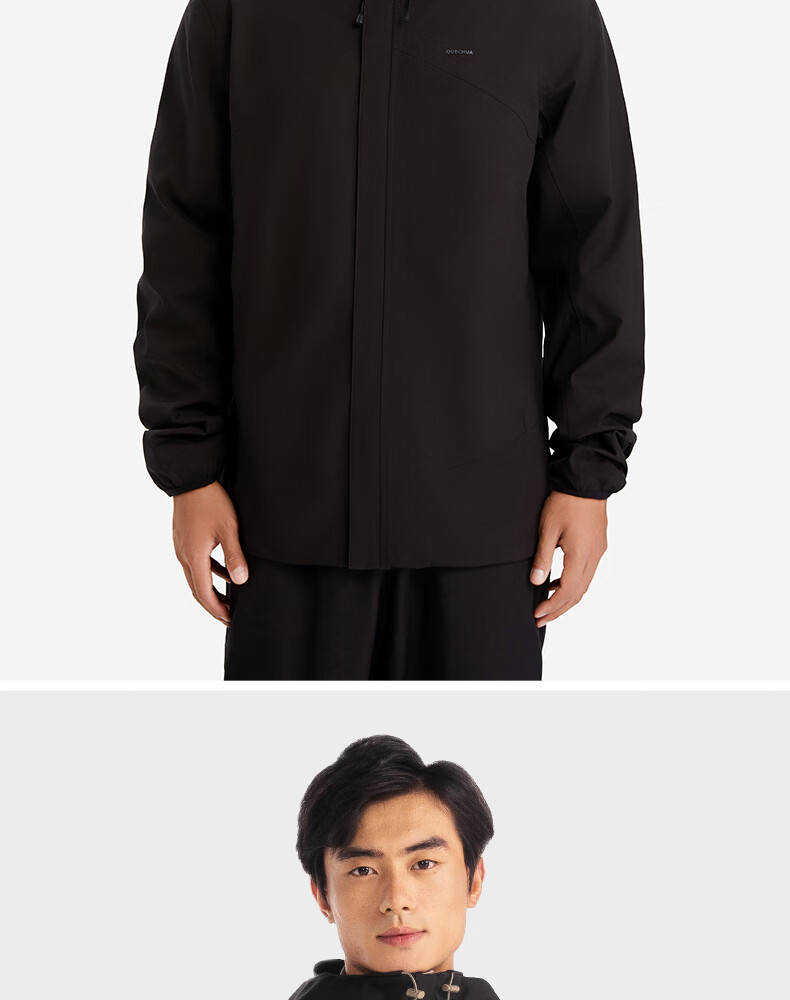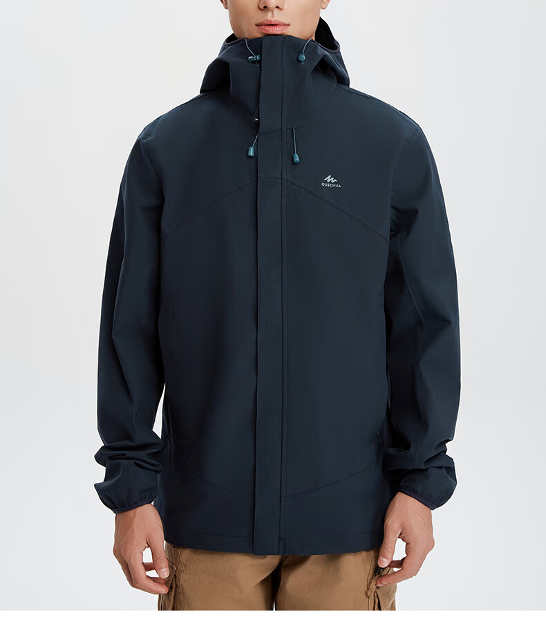 Decathlon Hard Shell Jacket Top Men's and Women's Outdoor Windproof Mountaineering Hiking Waterproof Jacket Windbreaker Sports Jacket MH150 Black-2025 New (Men's MH100) L