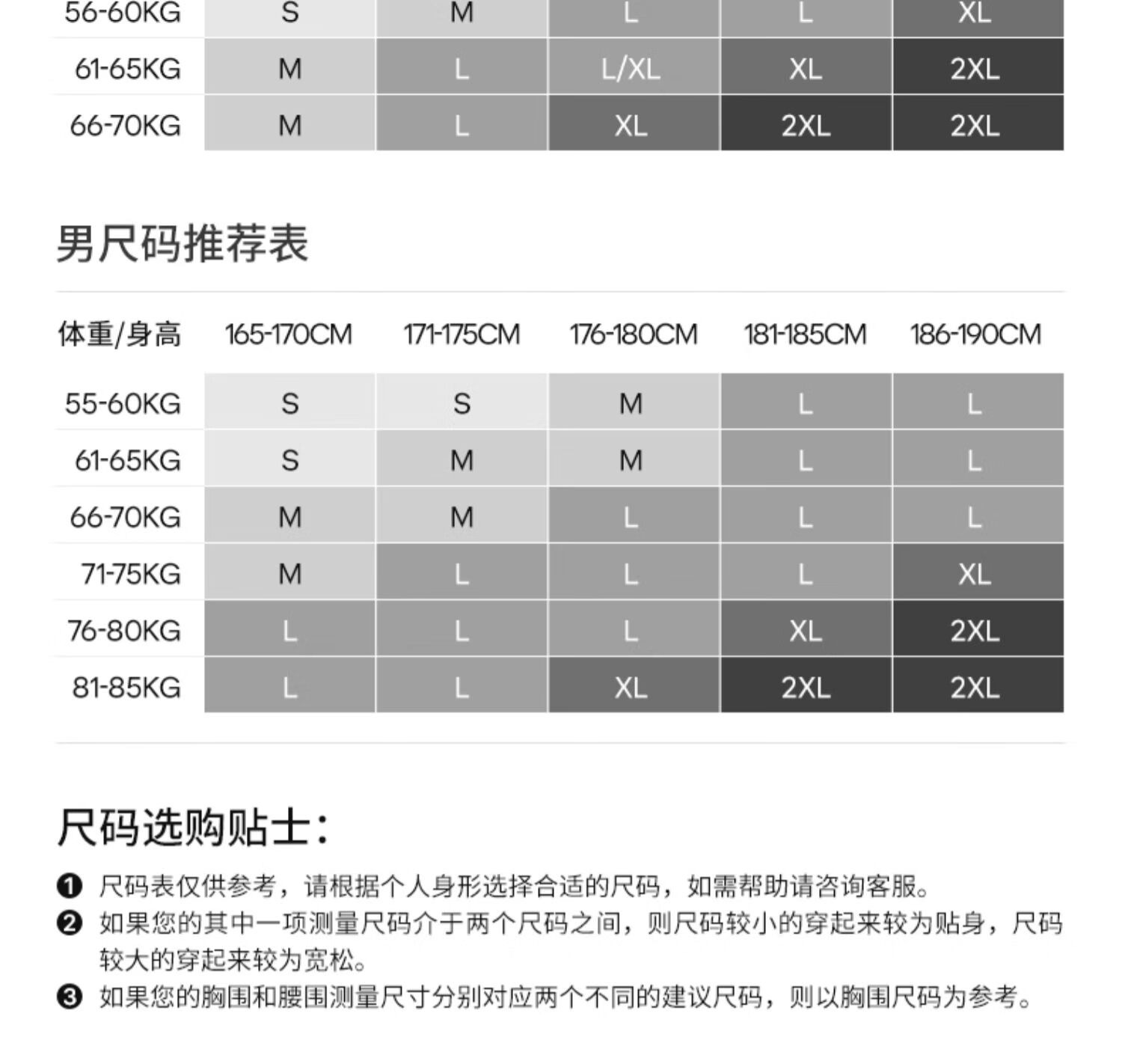 China (cm) 160-165/84-86 165-170 / 88-90 167-172 / 92-96 168-173 / 98-102 170-176 / 106-110