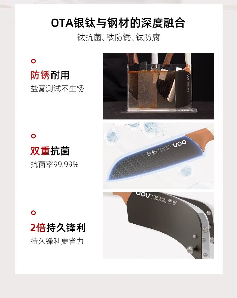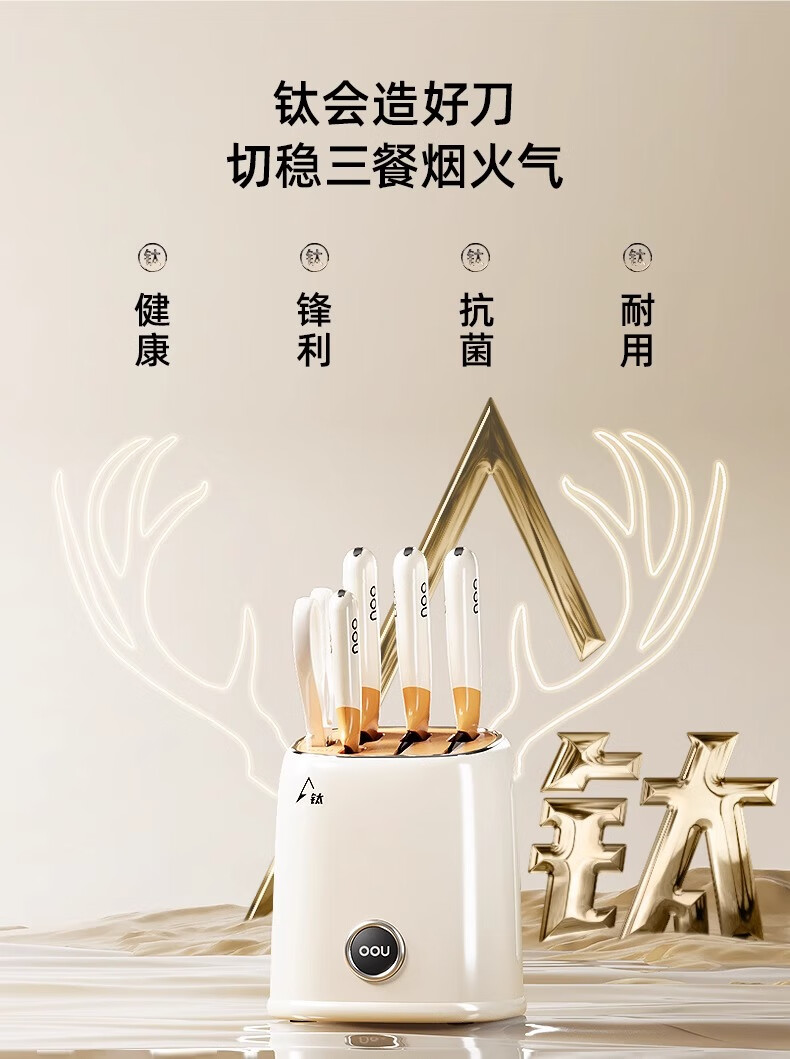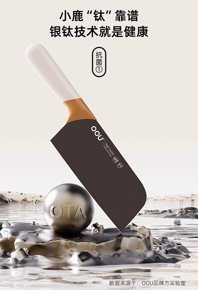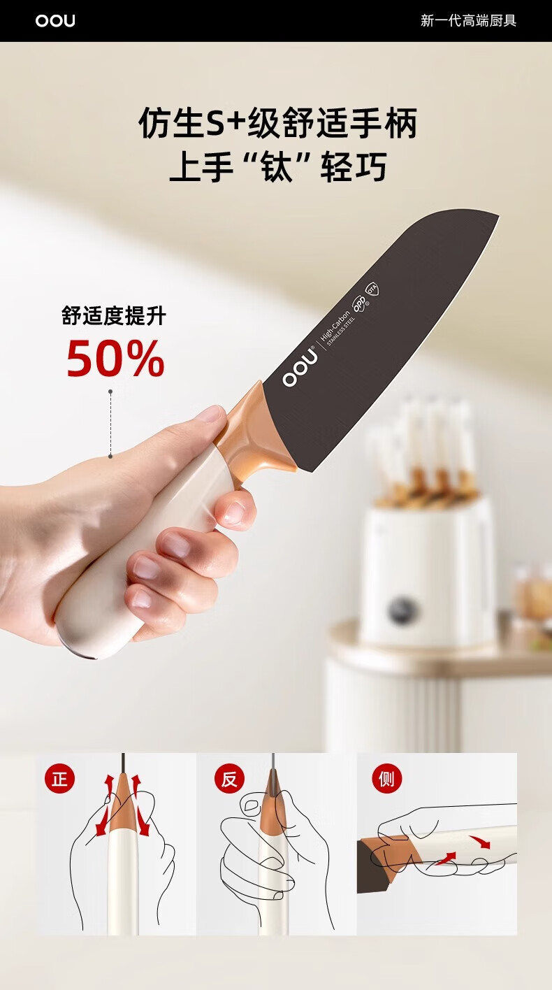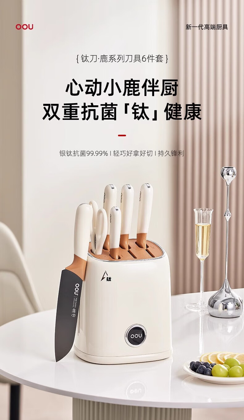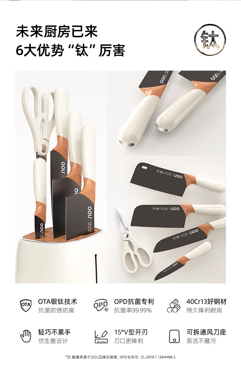 OOU Knife Set Knife Full Set Steel Kitchen Knife Set Chopping Knife Scissors Household Kitchen Knife Silver Titanium Antibacterial Knife Anti-Oxygen Antibacterial-Titanium Knife 6-piece Set