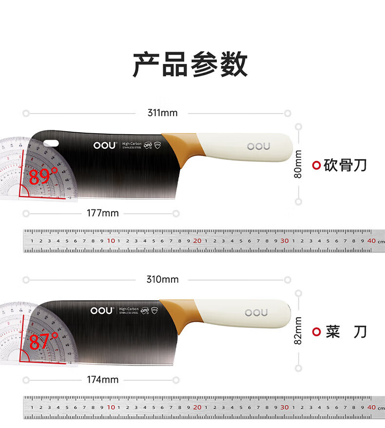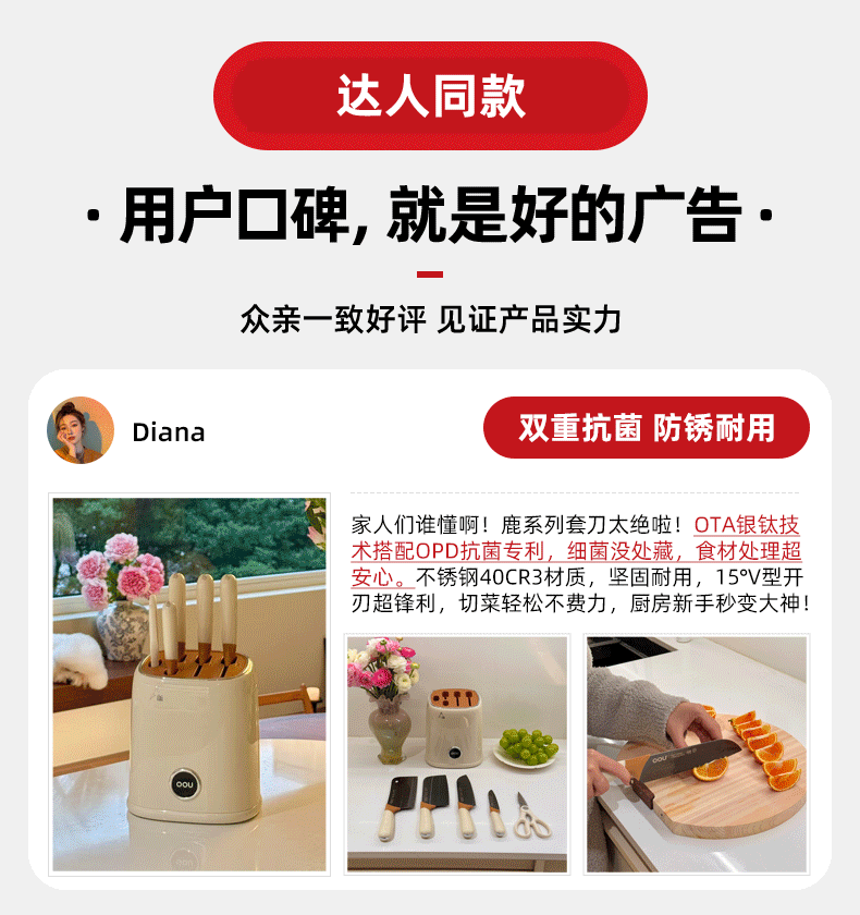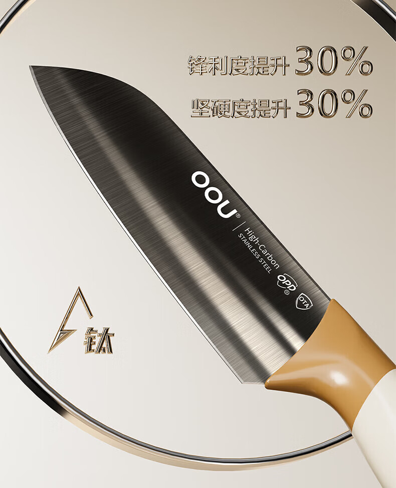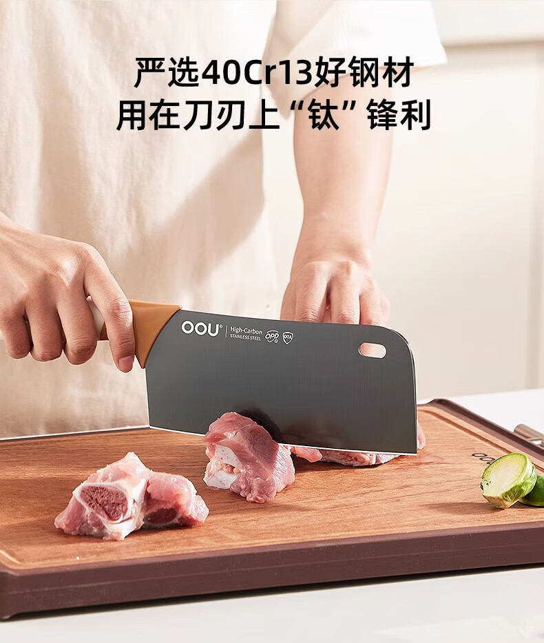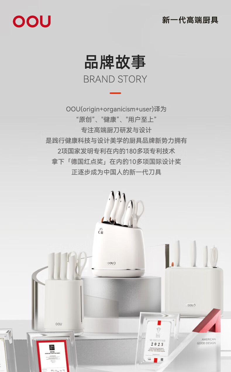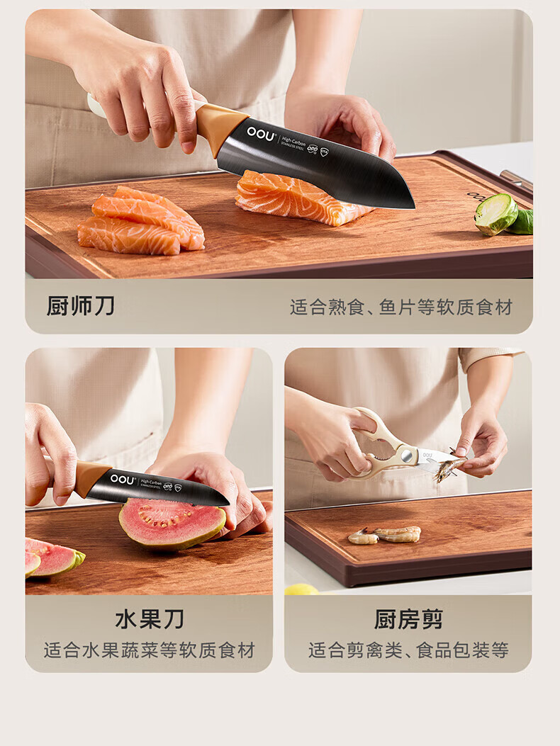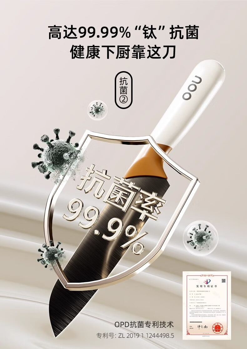 OOU Knife Set Knife Full Set Steel Kitchen Knife Set Chopping Knife Scissors Household Kitchen Knife Silver Titanium Antibacterial Knife Anti-Oxygen Antibacterial-Titanium Knife 6-piece Set