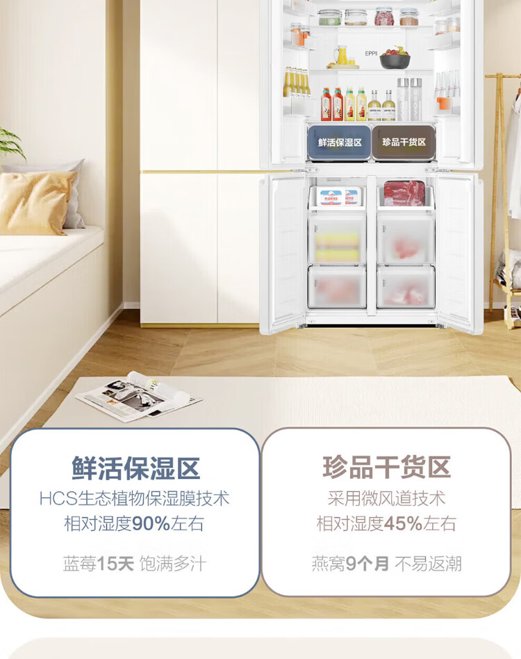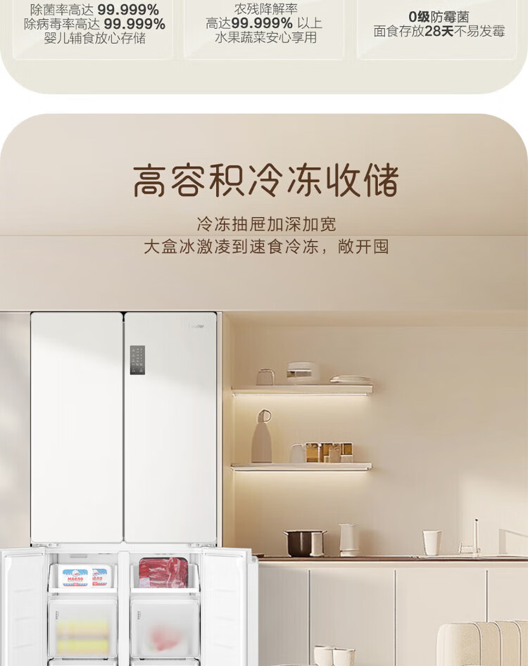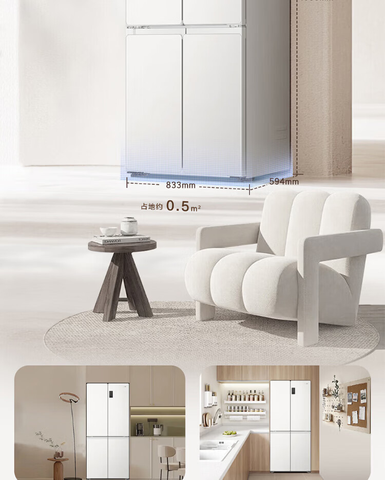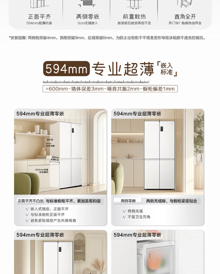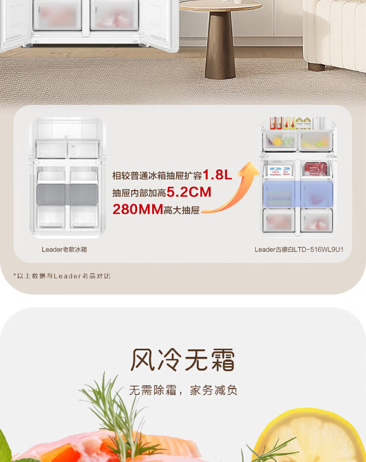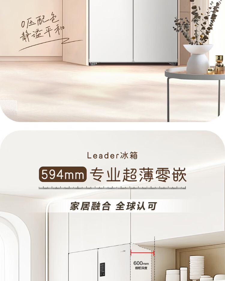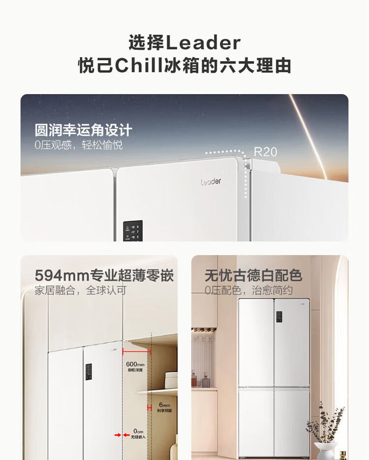 Haier refrigerator produces 516 ultra-thin zero-embedded 490-liter four-door cross-door bottom cooling first-class energy efficiency large capacity Leader home refrigerator with national subsidy 594mm professional ultra-thin zero-embedded + EPP clean system + oxygen-blocking dry and wet storage