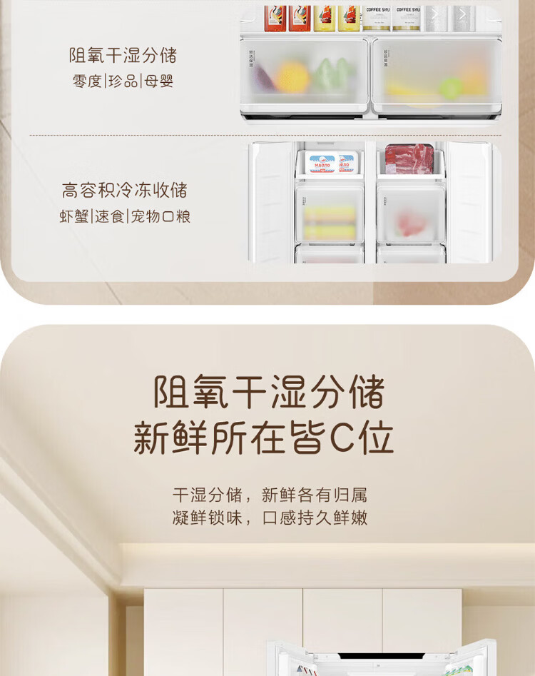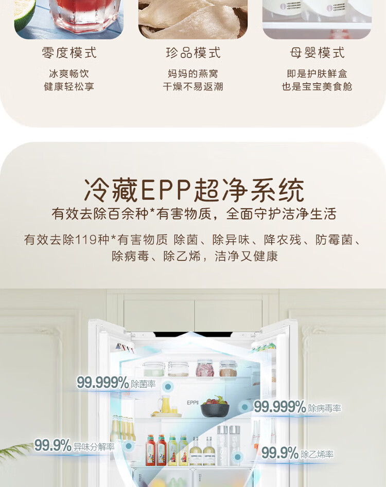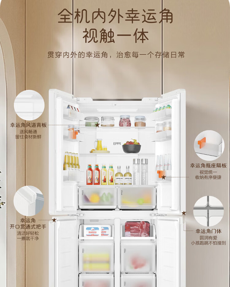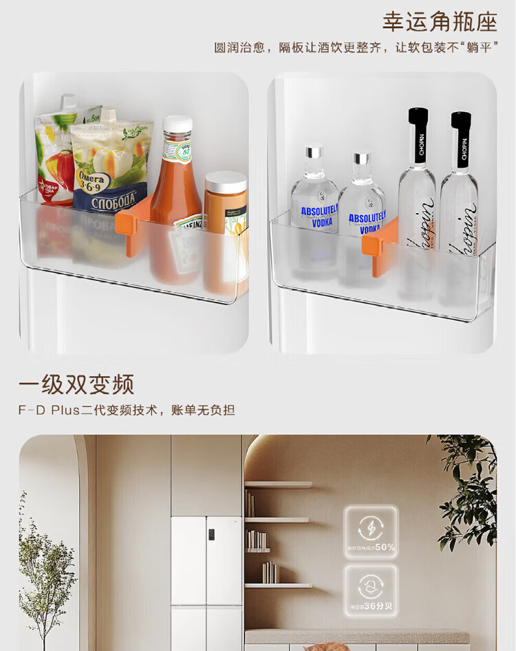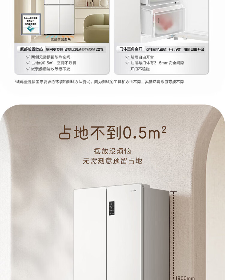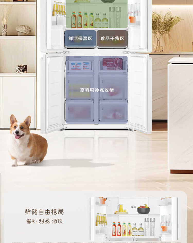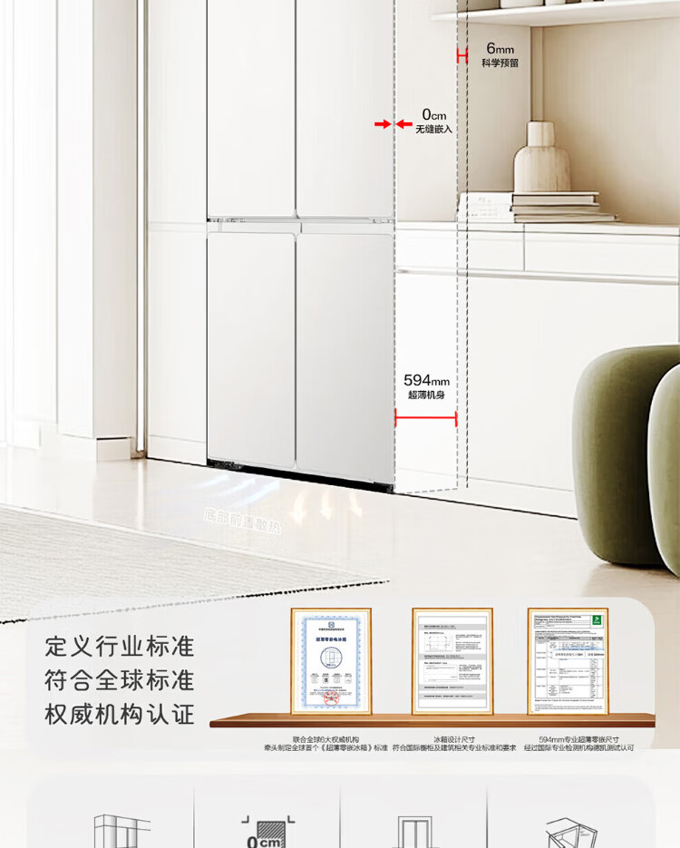 Haier refrigerator produces 516 ultra-thin zero-embedded 490-liter four-door cross-door bottom cooling first-class energy efficiency large capacity Leader home refrigerator with national subsidy 594mm professional ultra-thin zero-embedded + EPP clean system + oxygen-blocking dry and wet storage