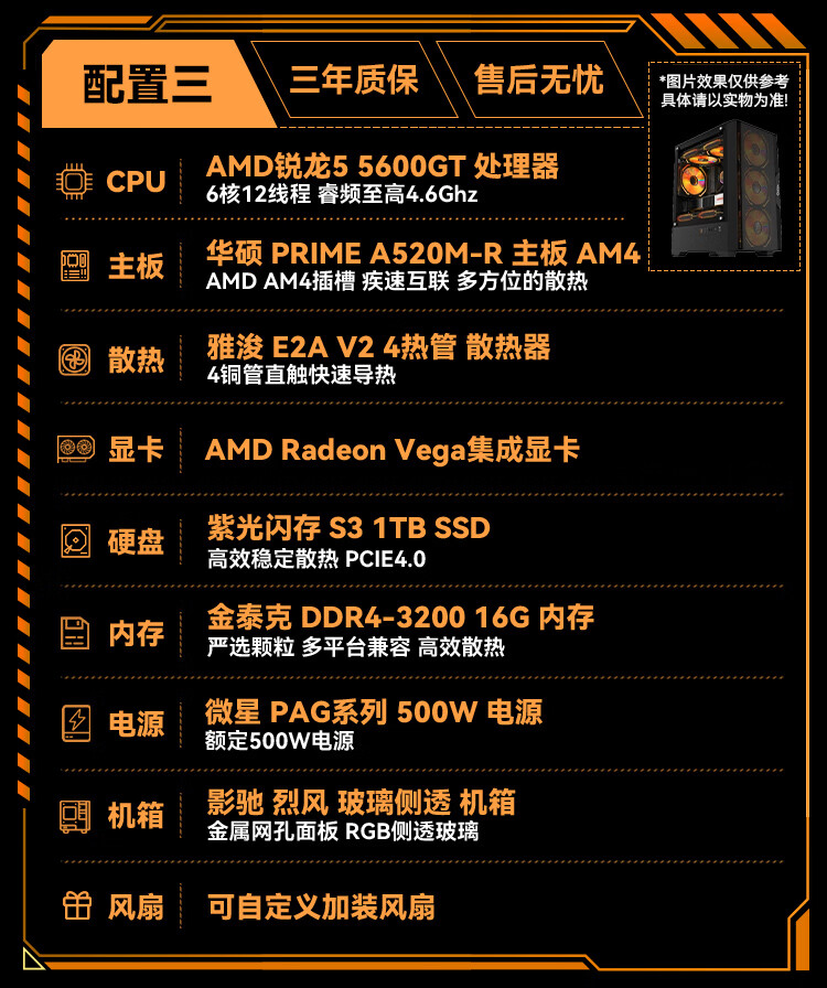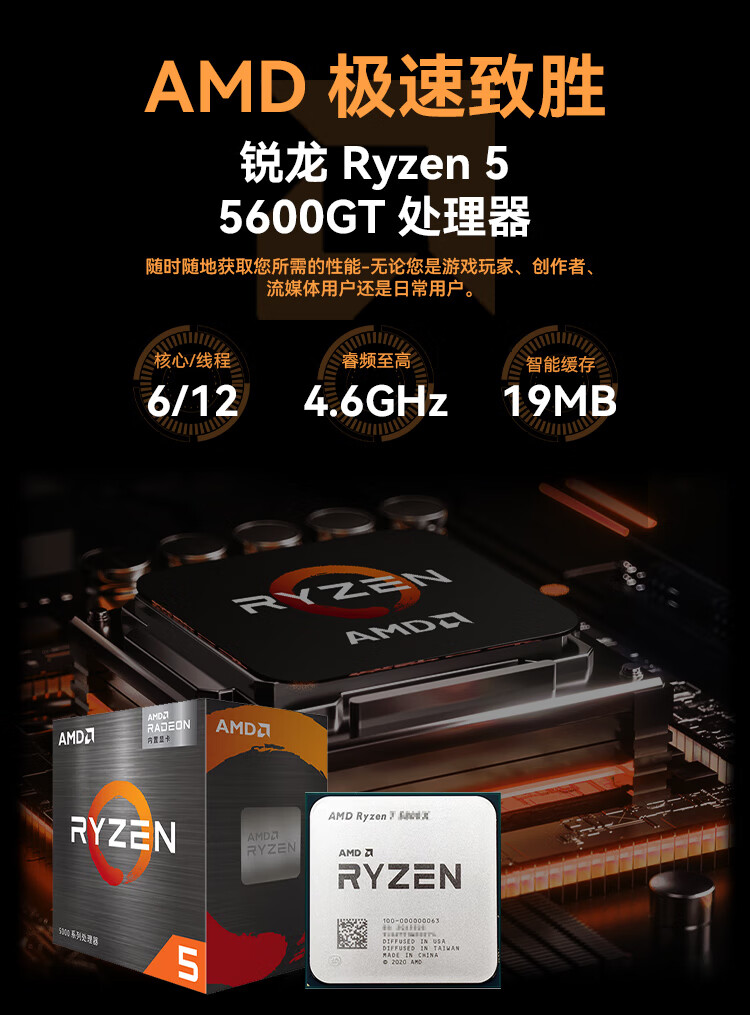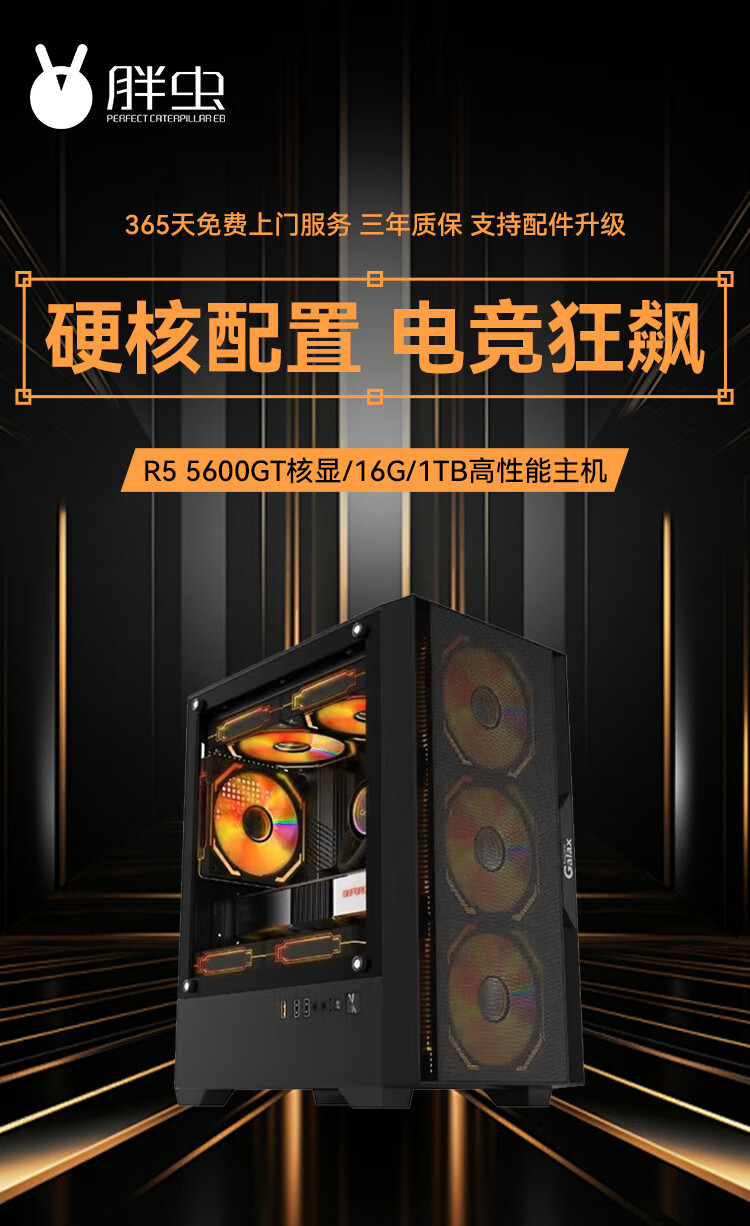ASUS AMD Ryzen R5 5600GT Core Display High-end Desktop Design Computer Office Home Game Assembly Machine DIY Host Fat Bug Computer Advanced Version R5 5600GT Integrated Display-16G-500G Host + AOC 24B31HE Monitor