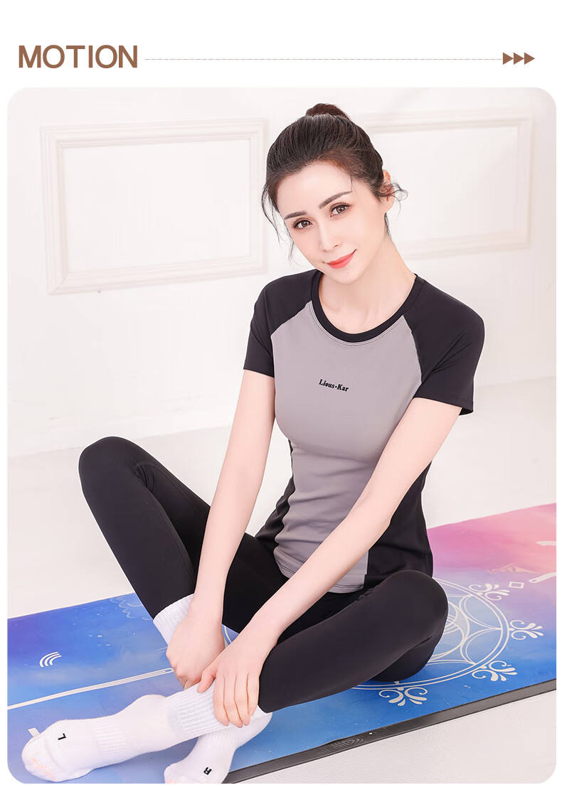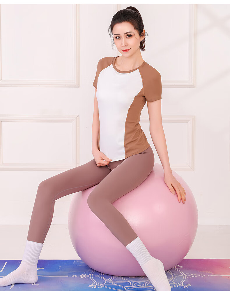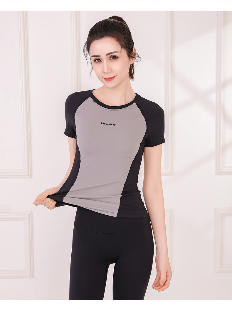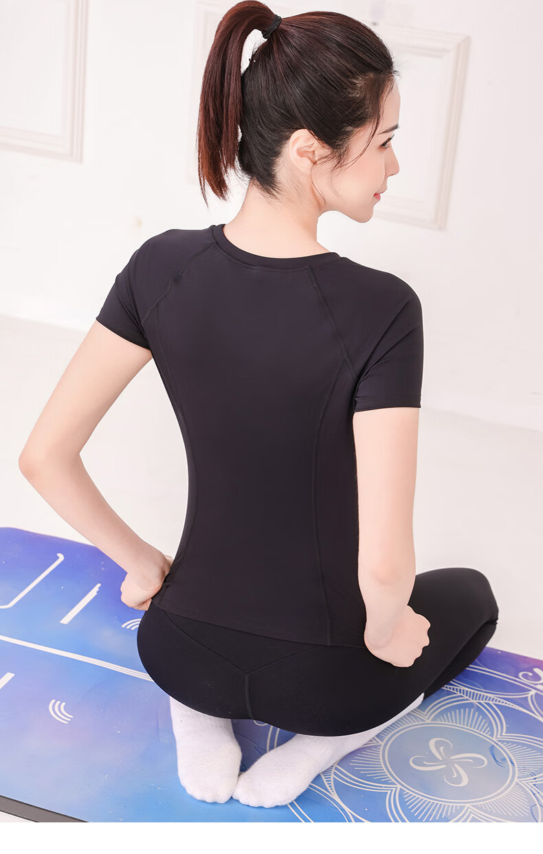 Sporn Yoga Wear Short Sleeve Women's Outerwear 2025 New Sports Suit with Chest Pad Professional Pilates Training Fitness Top 25506 Black Top (With Chest Pad) L (100-120Jin Jin is equal to 0.5kg)