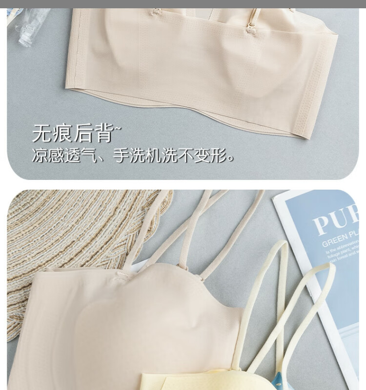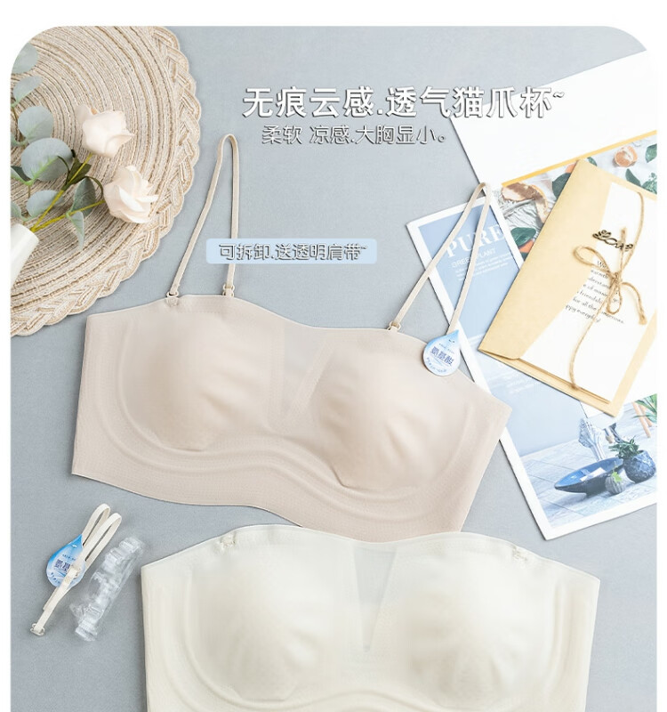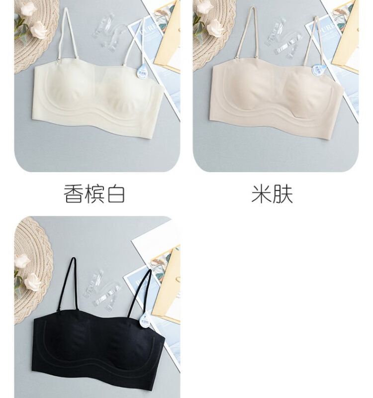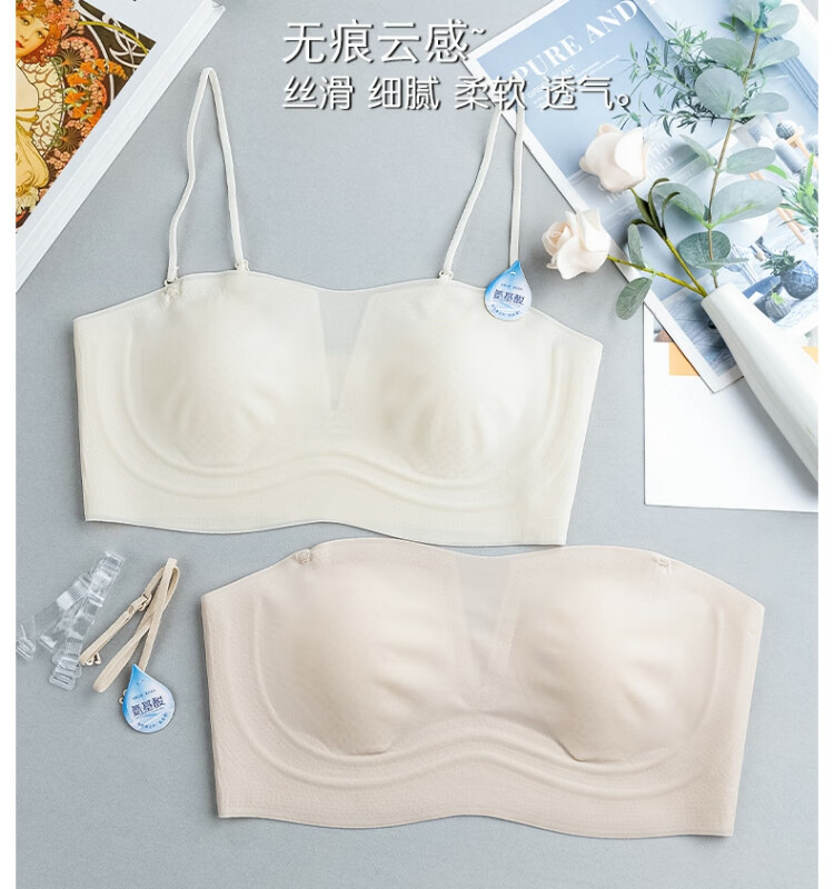 Gemanduo's beautiful back, big breasts, small breasts, summer ultra-thin, invisible, strapless tube top, anti-exposure, one-word ice silk bra, champagne white, one size fits all (80-140Jin Jin equals 0.5kg)