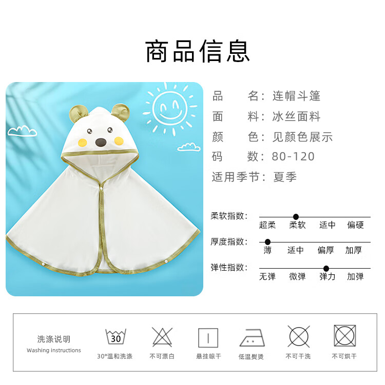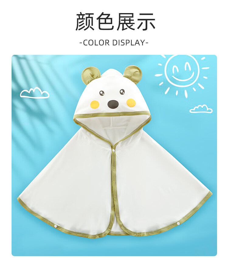 Baby sun protection cloak, lightweight and breathable summer new shawl, short-sleeved poncho for boys and girls, outdoor beach wear, green 120