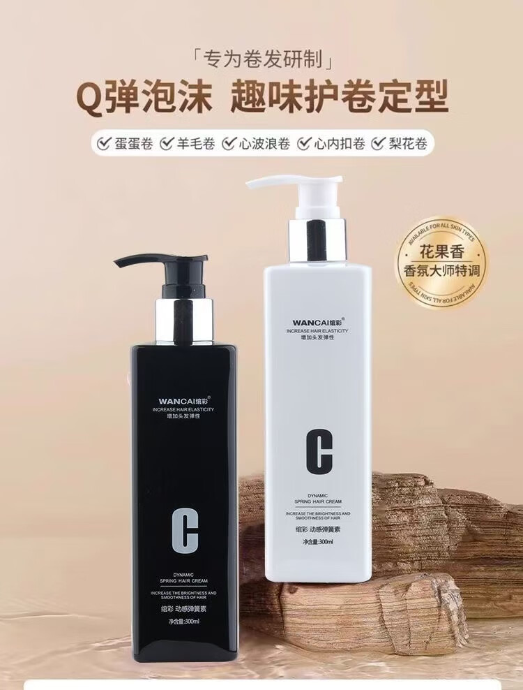 Wancai dynamic spring plain curly hair moisturizing no-wash soft styling fragrance fluffy curl styling elastic hairdresser style dynamic spring plain black 300ml * 1 bottle