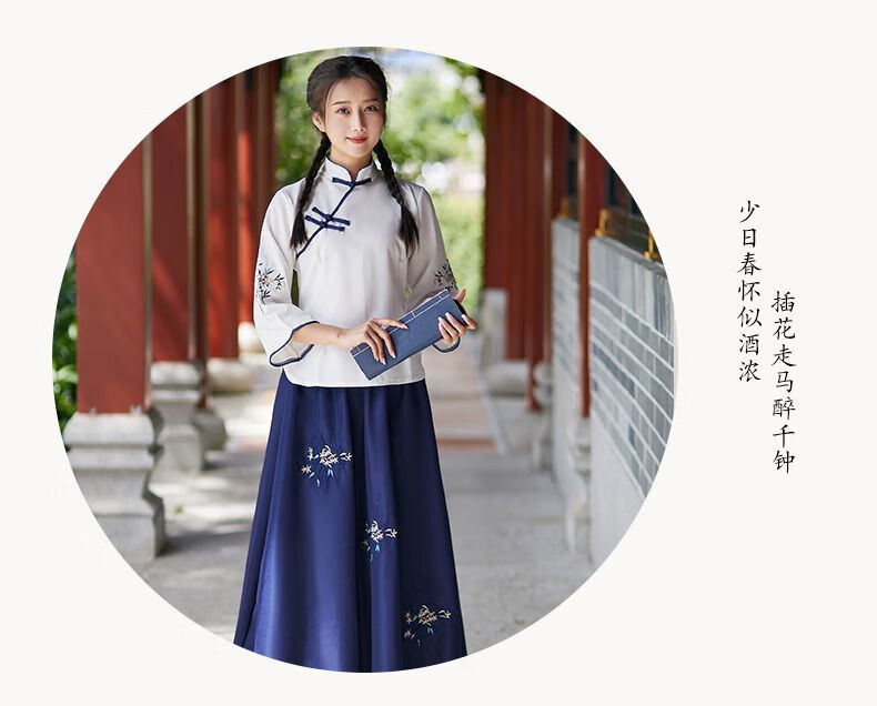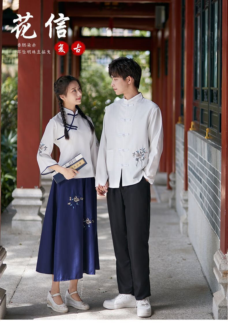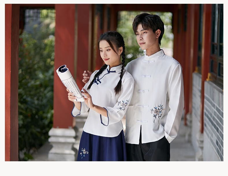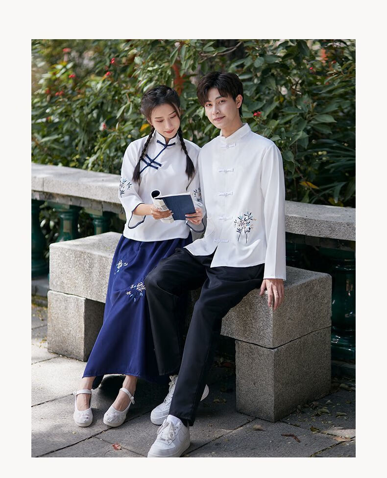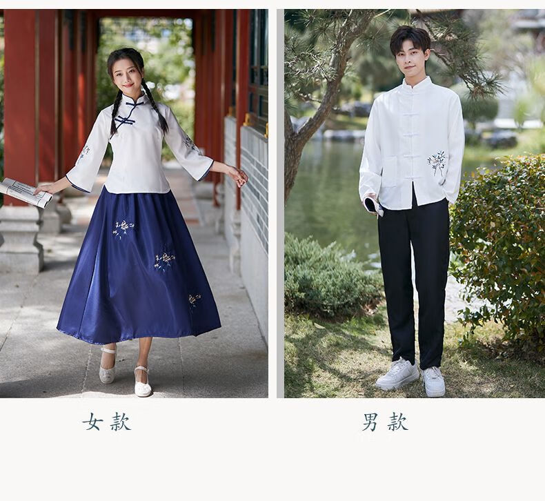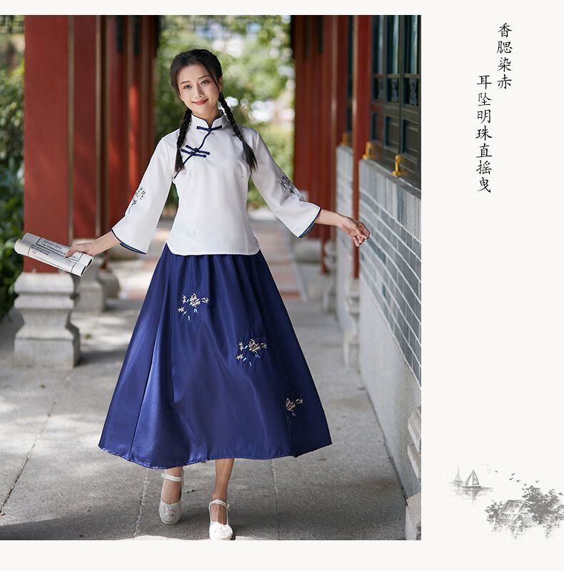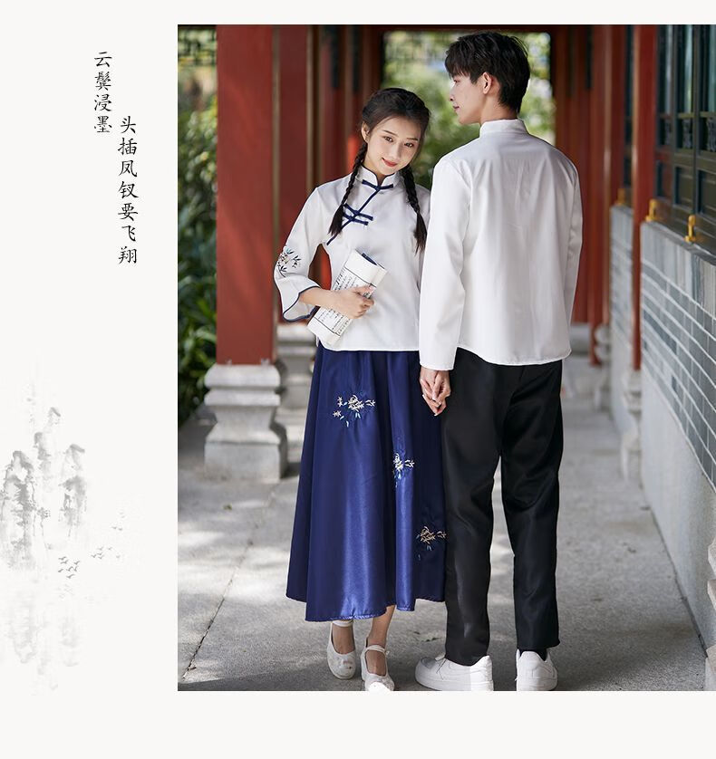 Tea Xiao Amin National Style Male and Female Student Clothing May Fourth Youth Clothing Class Clothes Stage Performance Chorus Clothing Chinese Style Performance Clothing Women's Suit Top + Skirt XL
