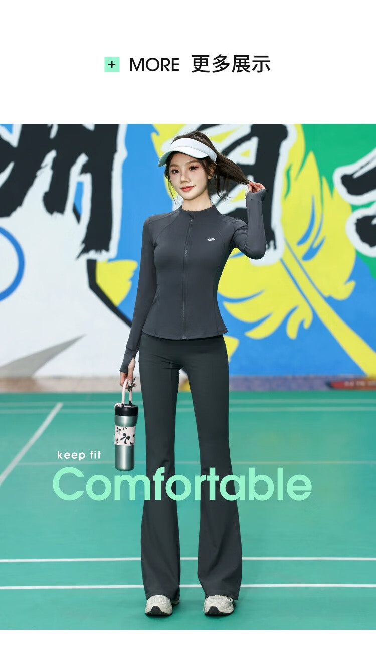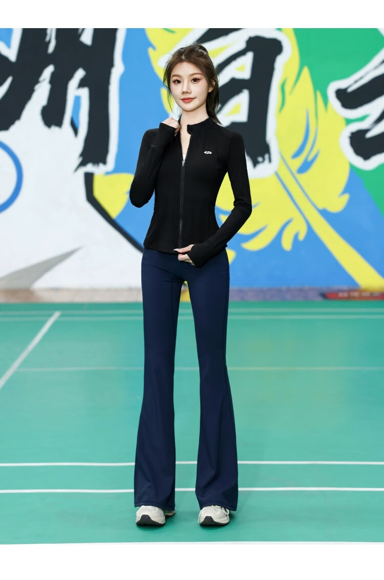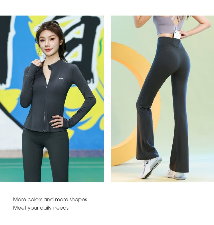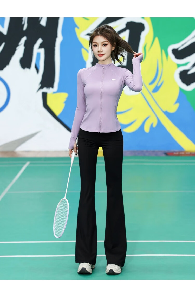 Best Velvet Quick-Drying Badminton Wear Sports Suit Women's Spring Long-Sleeved Pilates Beautiful Yoga Wear Back Pocket Micro-Ball Pants Dark Purple Two-piece Set (Gray Pants) XL
