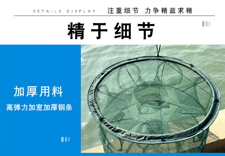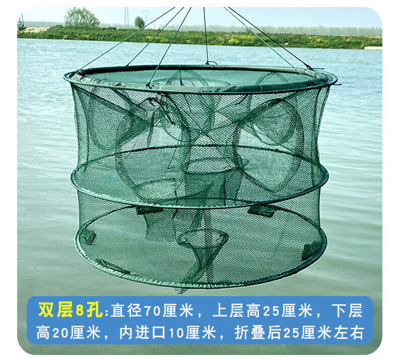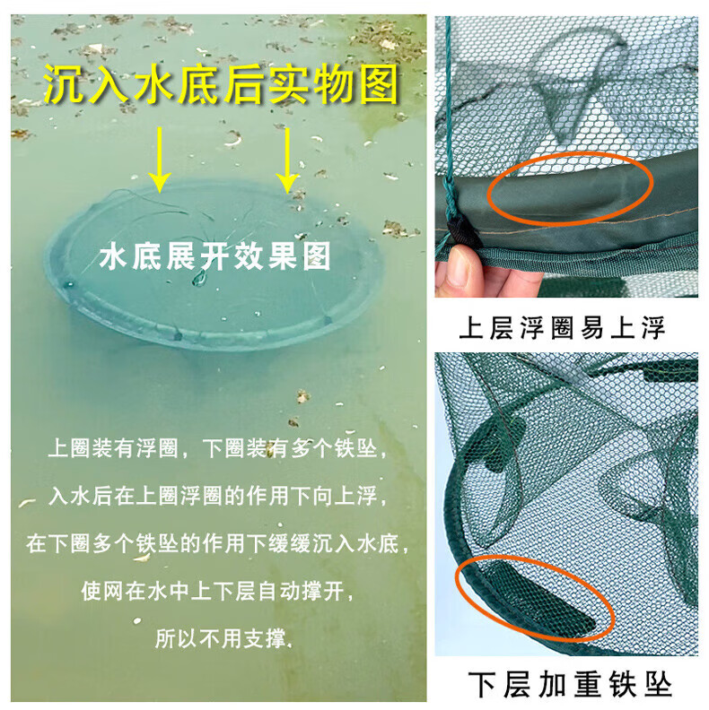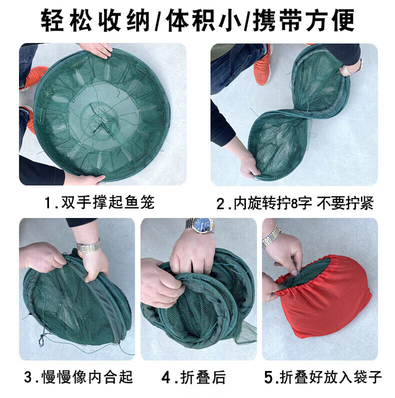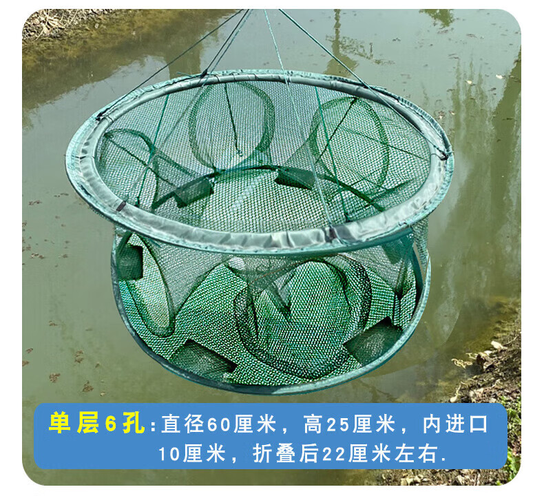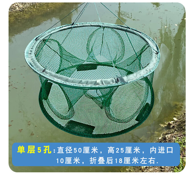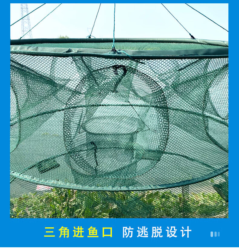Origin of fishing ground ridge net fish folding fish cage shrimp cage fishing net fish 1 net thickened lobster ground net fishing artifact special river shrimp net fish cage thickened single layer 5 holes 10 bait