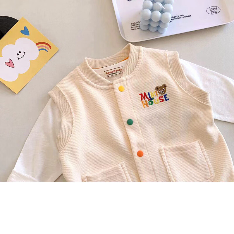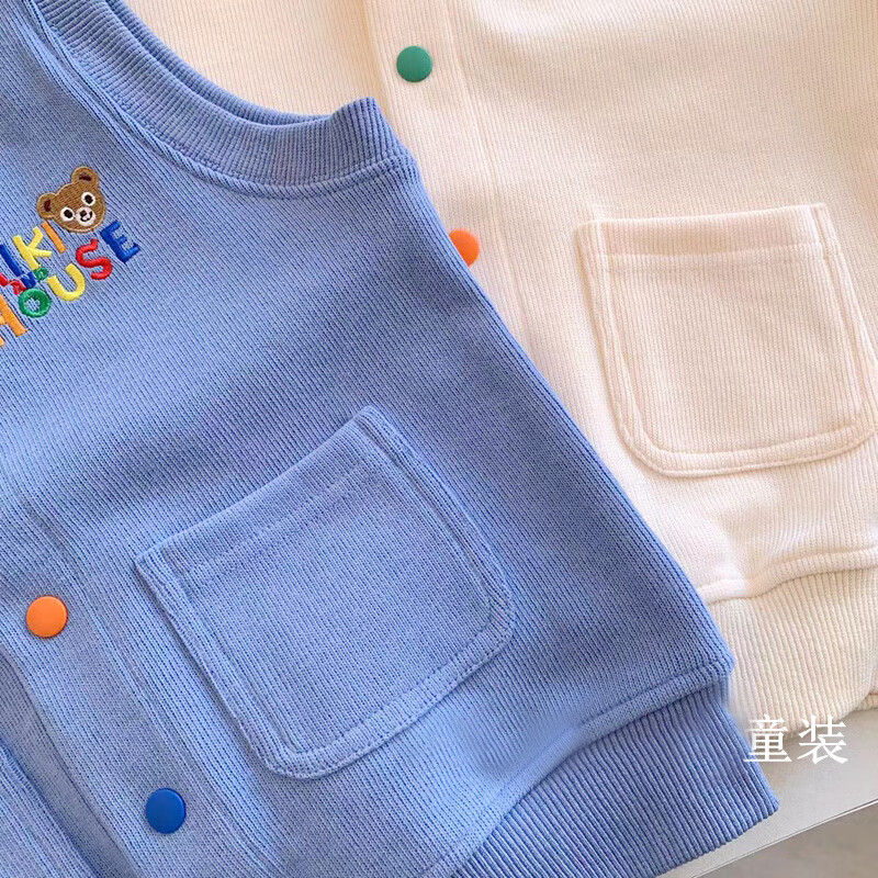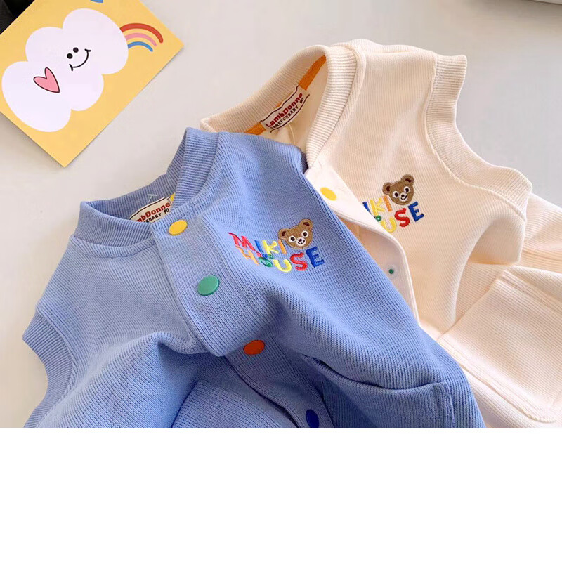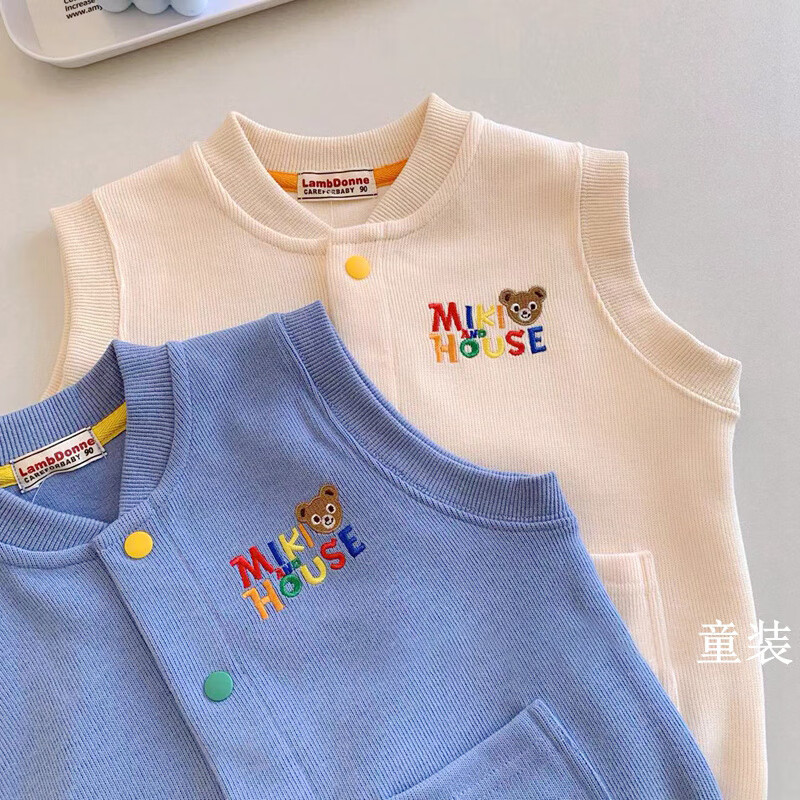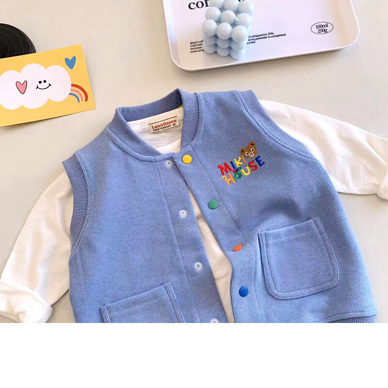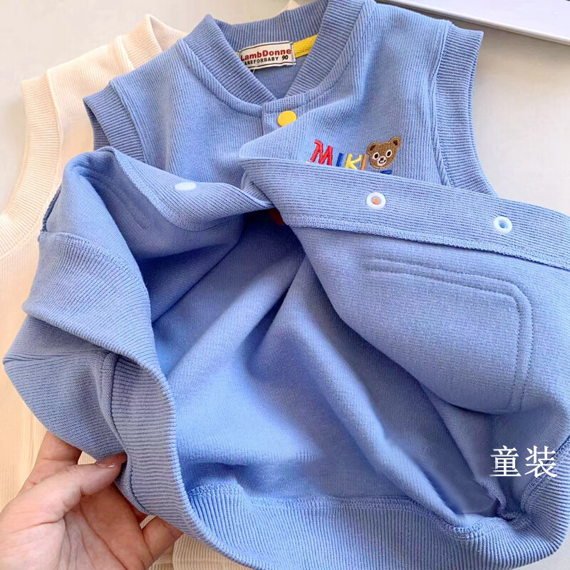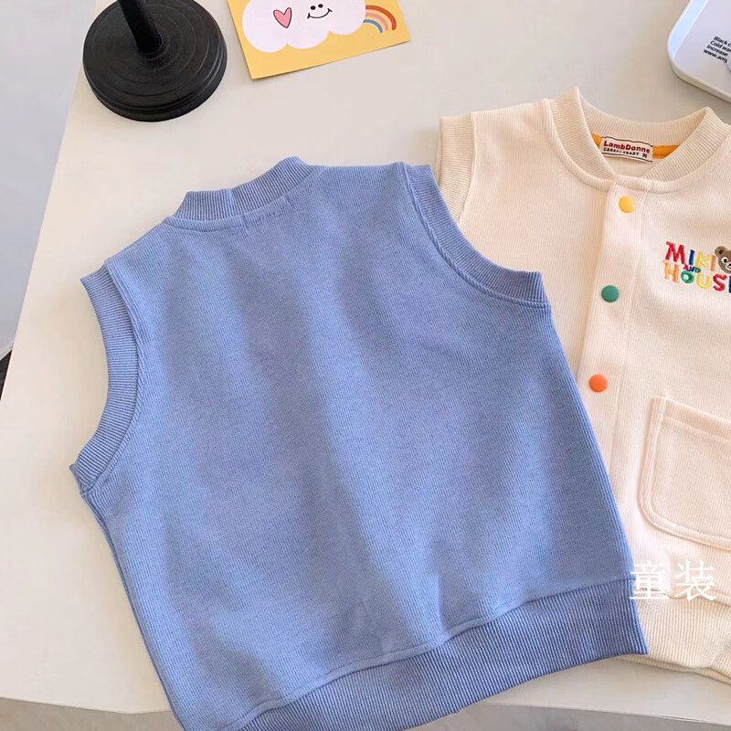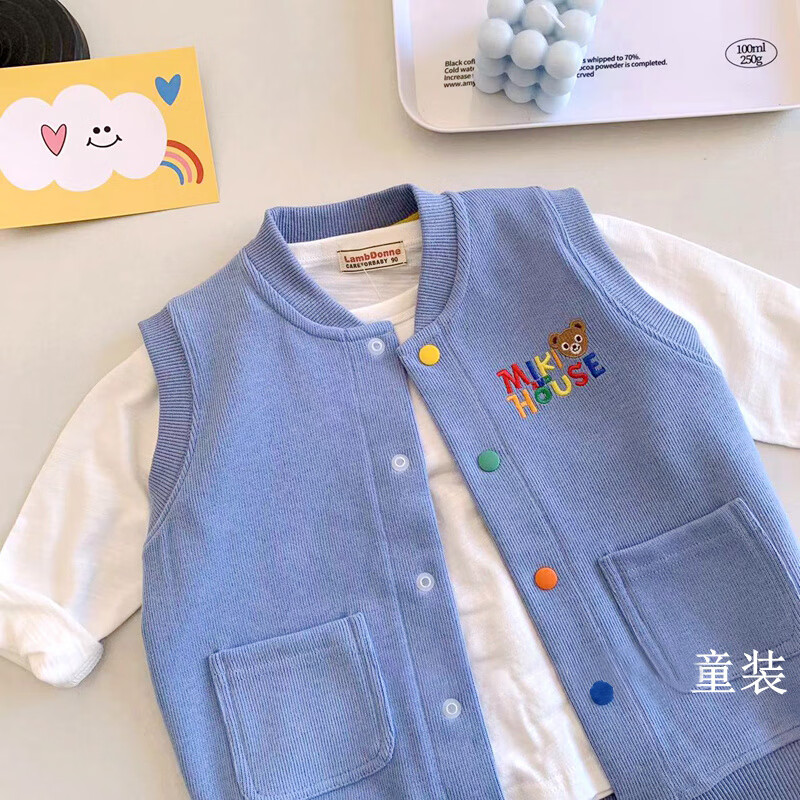 FANCYCHIC Japanese children's clothing children's vest spring and autumn new style boys and girls style vest vest pocket vest jacket blue 100 recommendations (90-100cm)