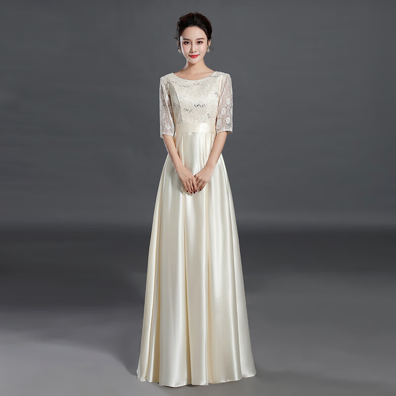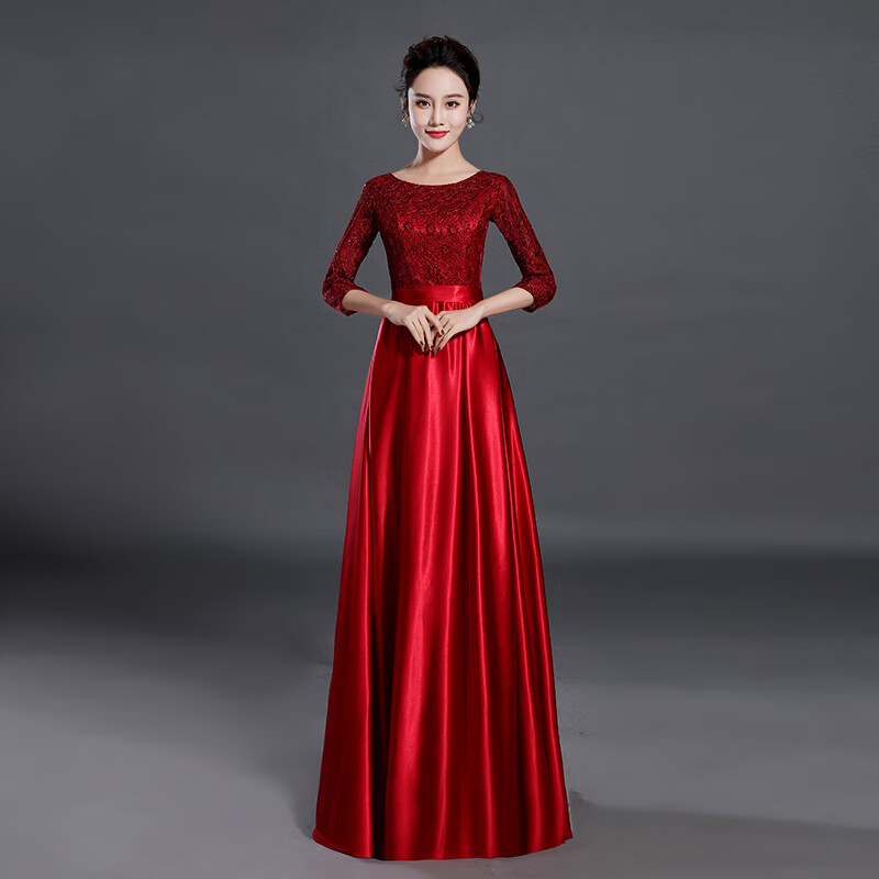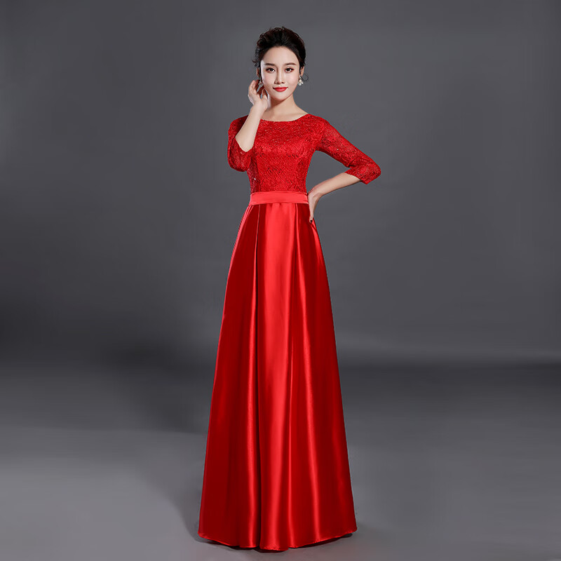 Su Lai Cantata Conductor Dress Female Host Long Dress Adult Stage Banquet Long Large Size Group Performance Outfit Black M