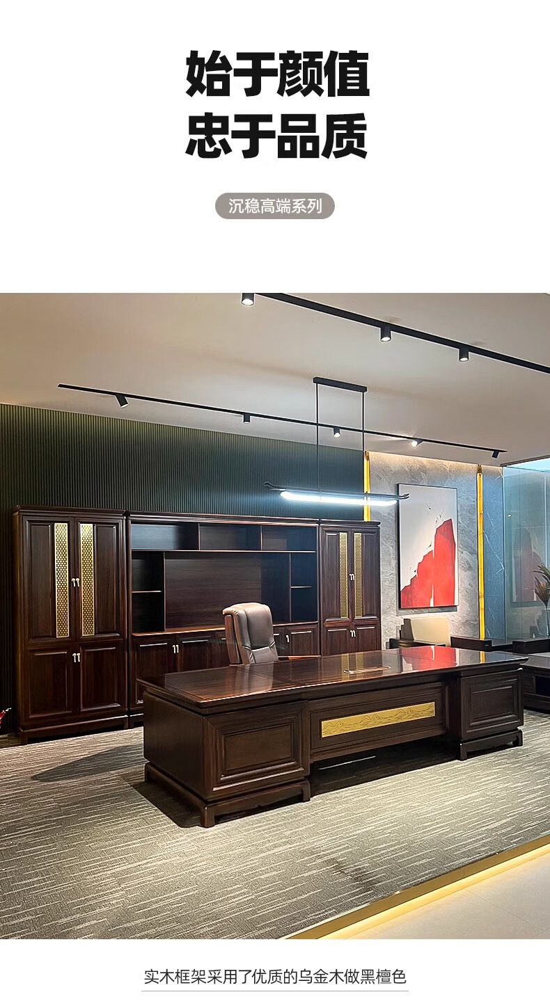 Aosenmingxin Chinese solid wood boss desk President desk Chairman ebony desk General manager high-end executive desk 2.4 meters boss desk