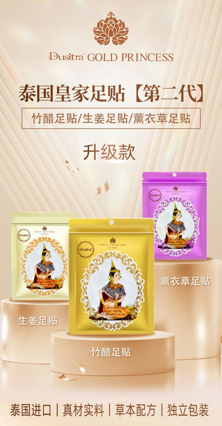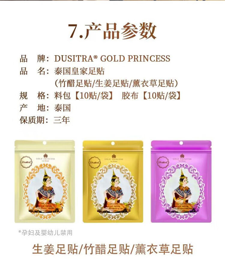 Dusitra Thailand imported royal foot patches original authentic bamboo vinegar ginger sleep fatigue relief discharge wet health foot patches royal ginger foot patches 10 patches * 3 pack 30 patches in total