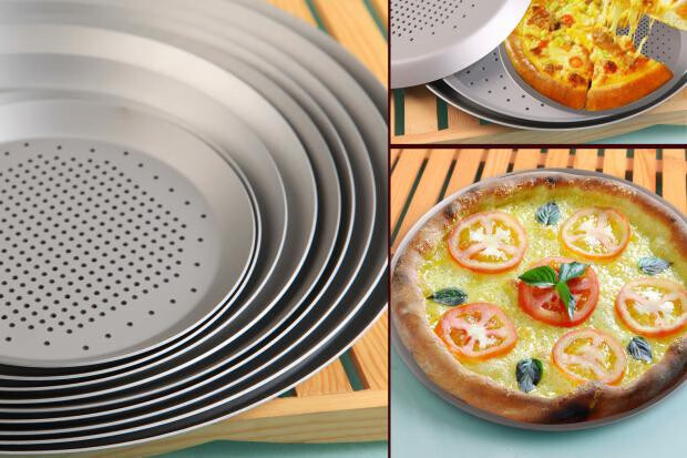 15-inch European-style pizza baking pan with hard film, non-stick punching pizza pan, aluminum alloy cheese heart oven with perforated baking tray, 9-inch hard film, not easy to scratch, diameter 25.5cm