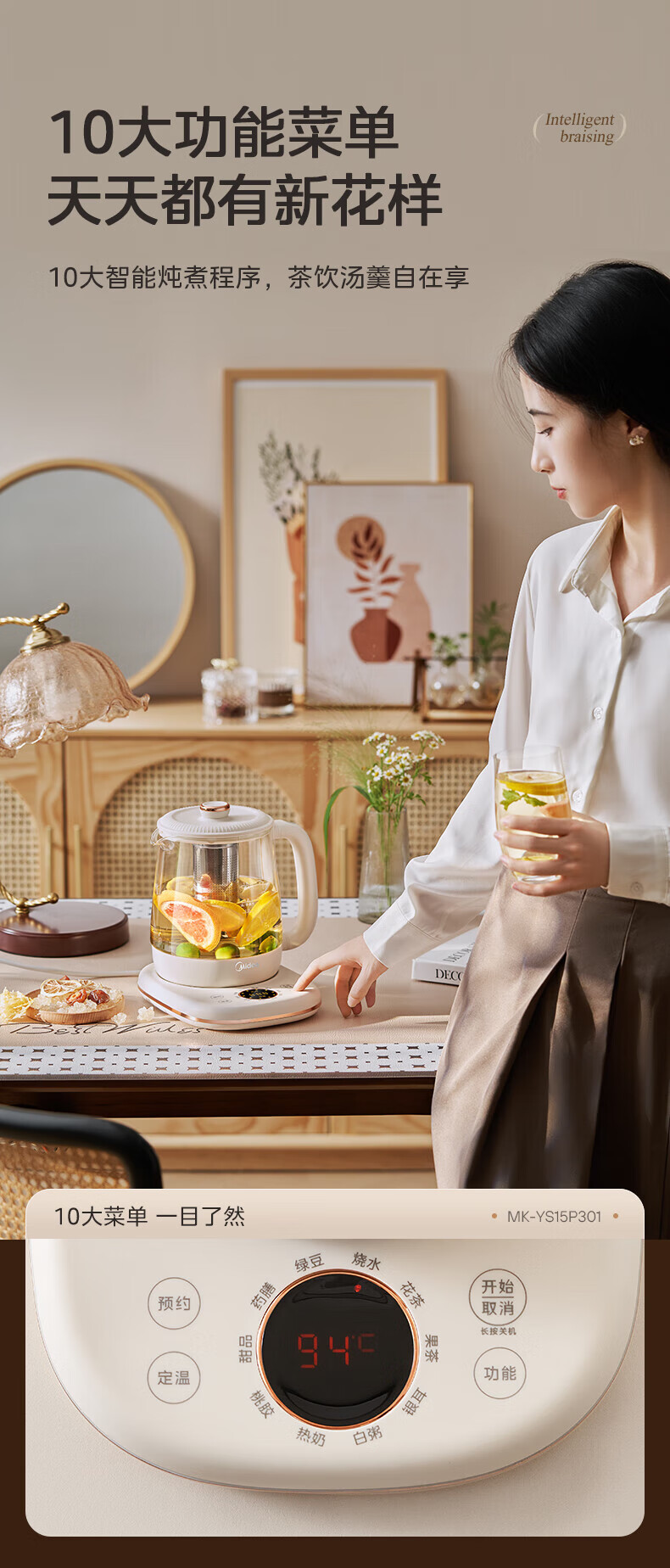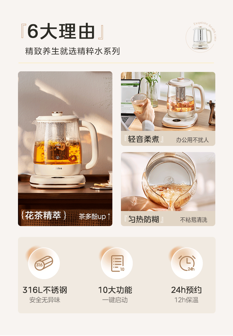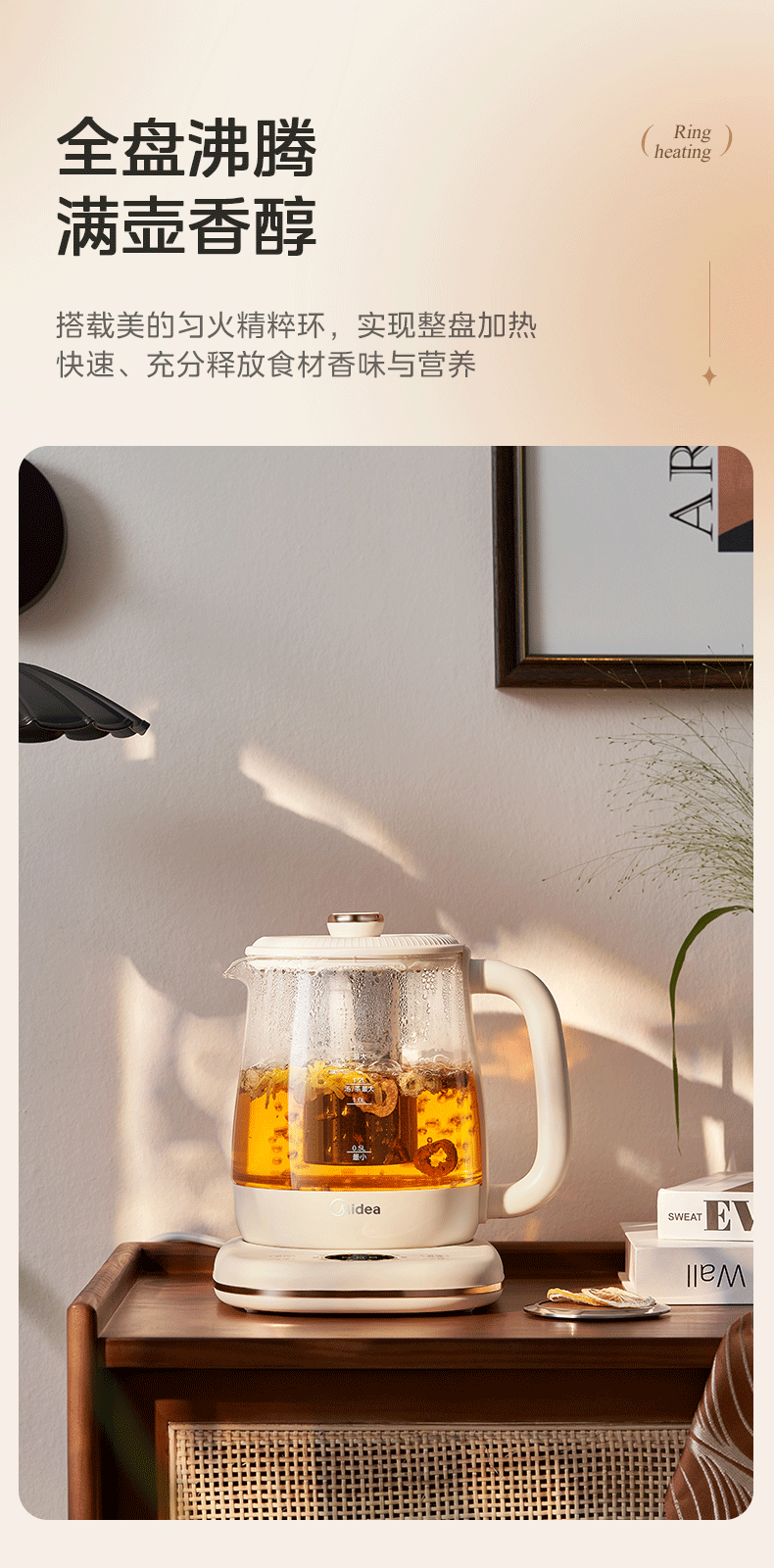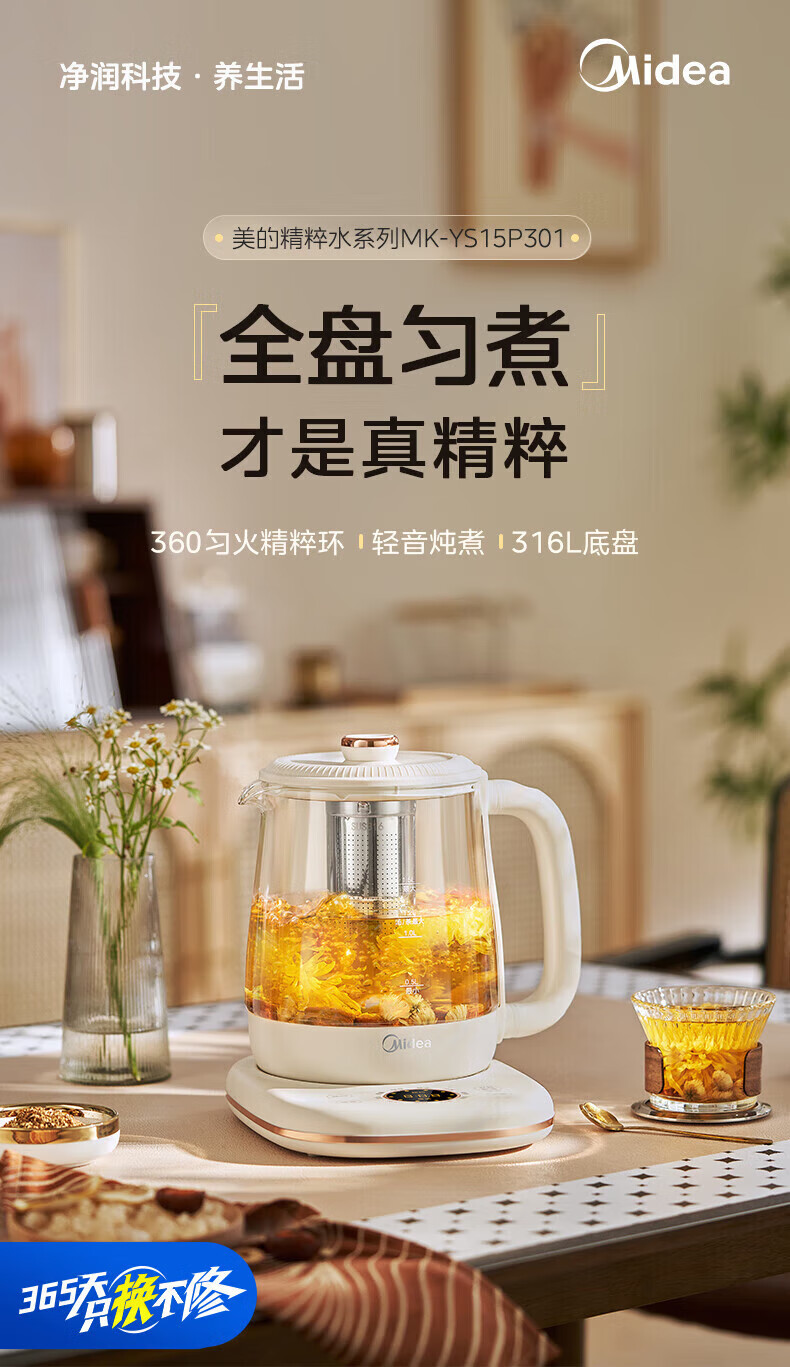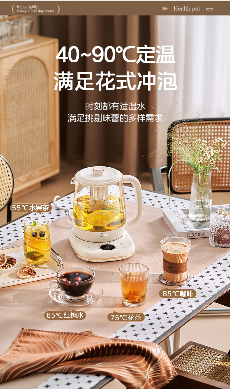 Midea health kettle household 1.5L large-capacity thickened glass electric kettle office fully automatic thermal insulation kettle multi-function teapot flower teapot tea maker 1.5L