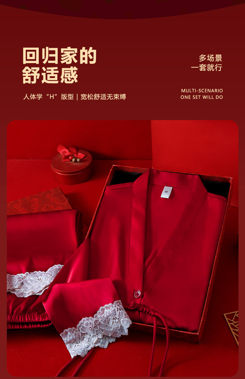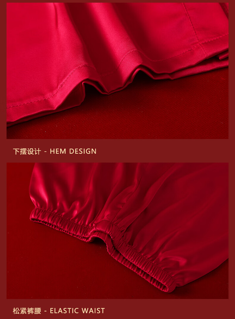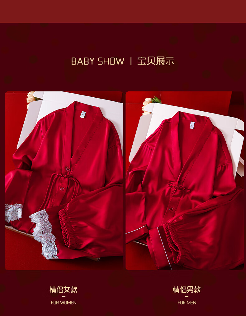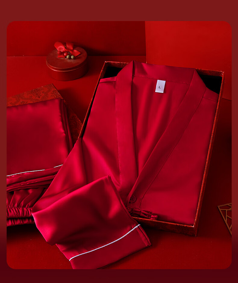 VURM Silk Pajamas Women 100 Mulberry Silk Spring and Summer Wedding Birth Year Couple Red Home Wear Gift Box Set Chang Xiangsui (Men's Style) L