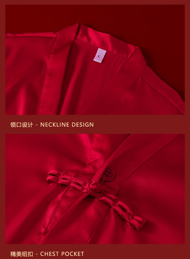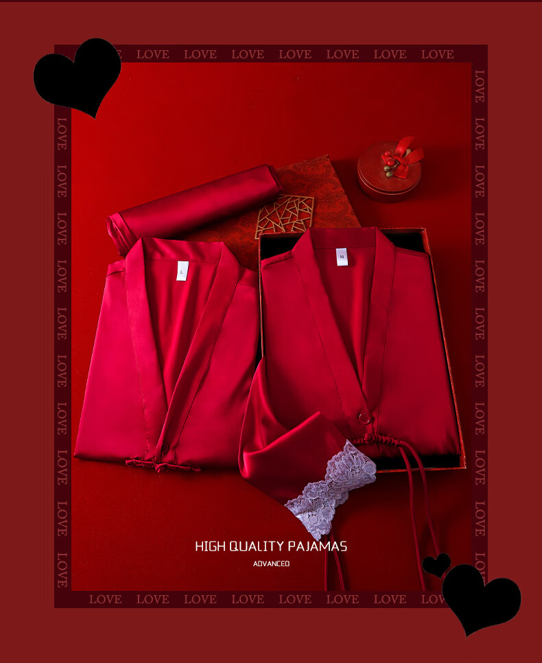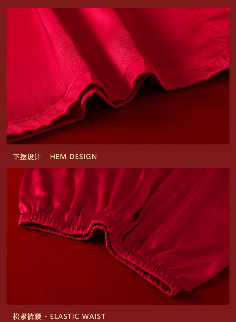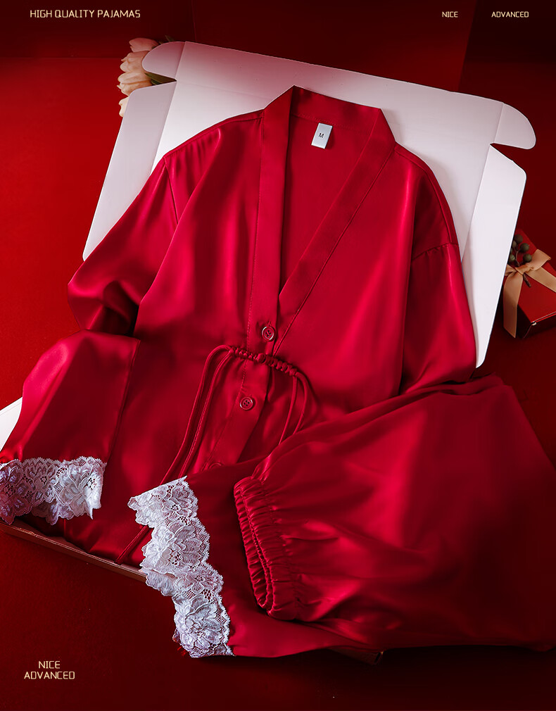 VURM Silk Pajamas Women 100 Mulberry Silk Spring and Summer Wedding Birth Year Couple Red Home Wear Gift Box Set Chang Xiangsui (Men's Style) L