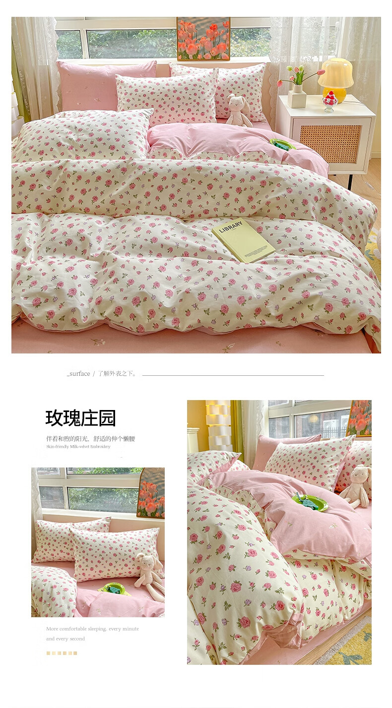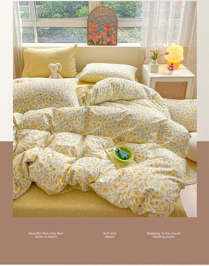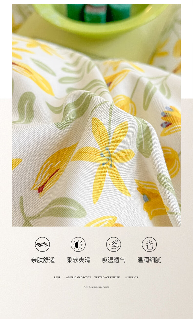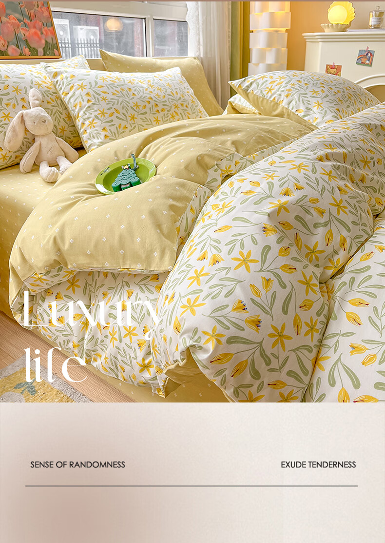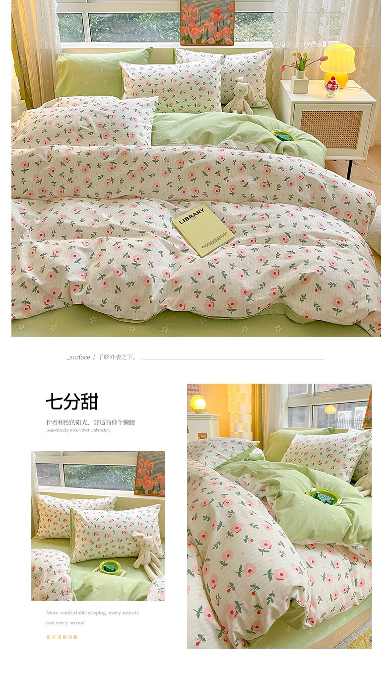 Mercury Series Home Textiles 100 Pure Cotton Four-piece Set 180 Count Xinjiang Combed Cotton Floral Bedroom Sheet Quilt Cover Sheet Fitted Style Bed Use 1.8m Sheet Style Four-piece Set