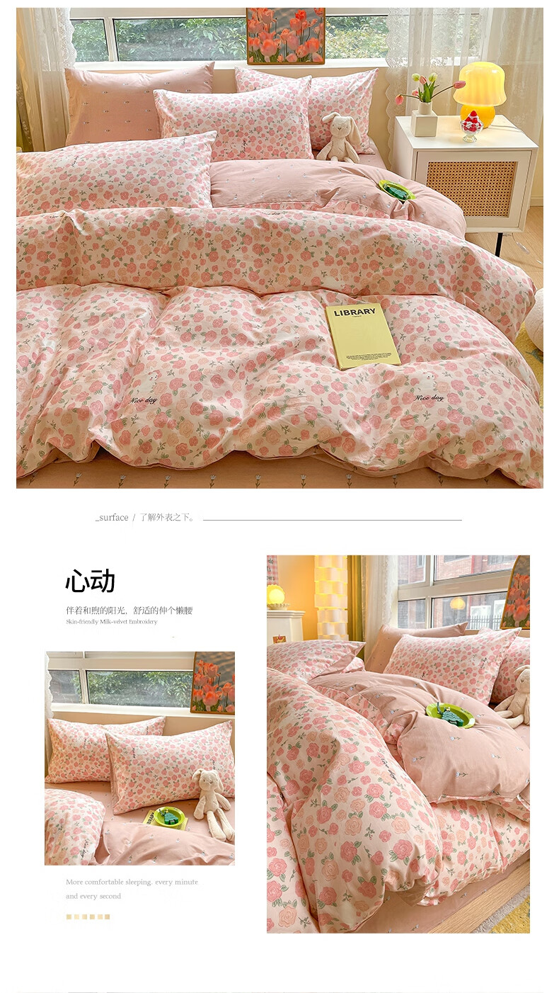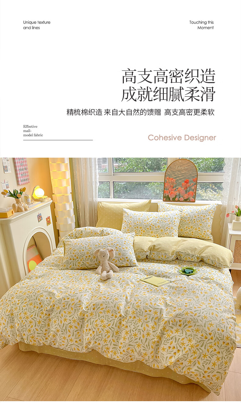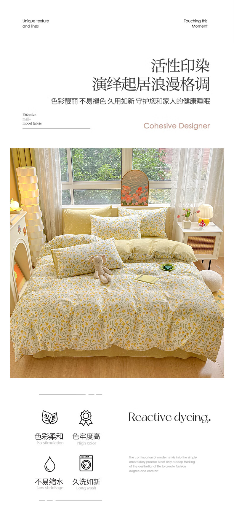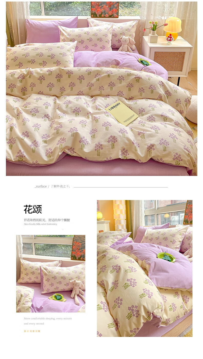 Mercury Series Home Textiles 100 Pure Cotton Four-piece Set 180 Count Xinjiang Combed Cotton Floral Bedroom Sheet Quilt Cover Sheet Fitted Style Bed Use 1.8m Sheet Style Four-piece Set