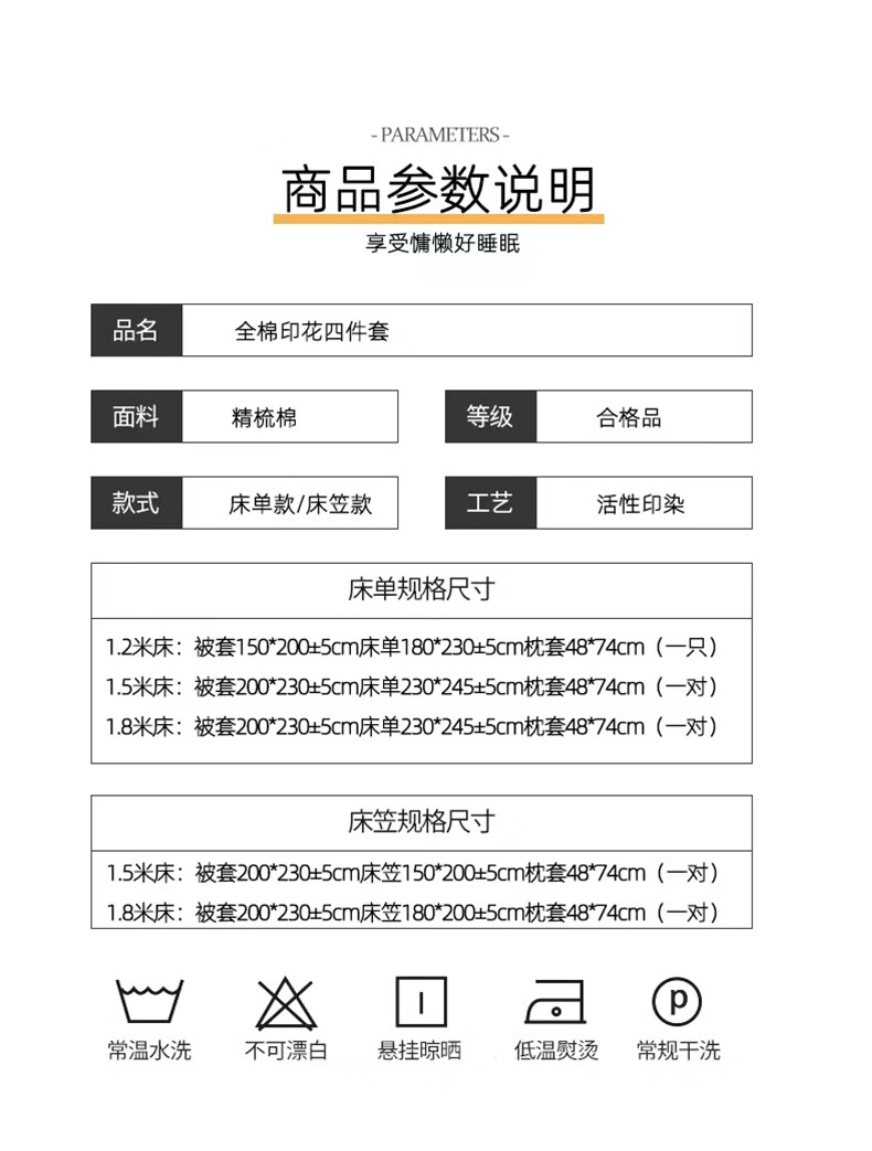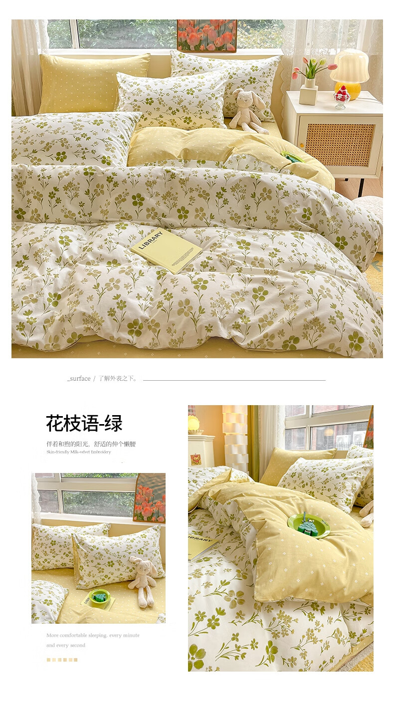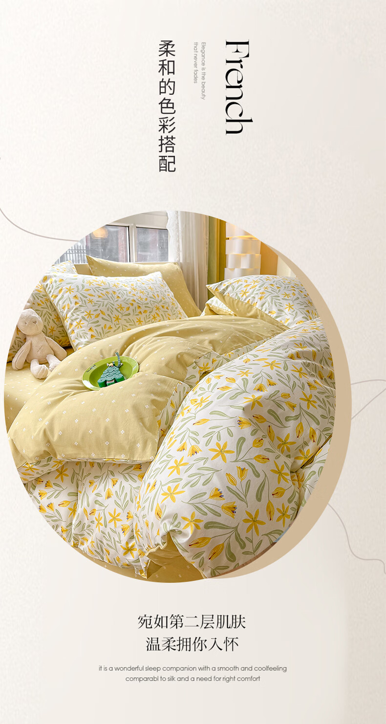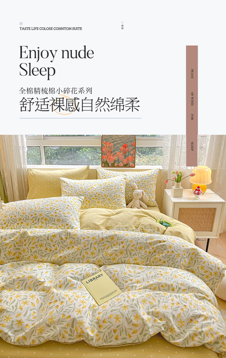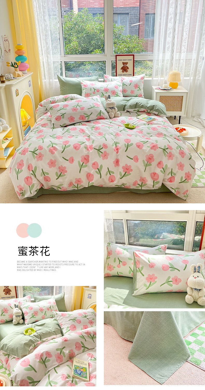 Mercury Series Home Textiles 100 Pure Cotton Four-piece Set 180 Count Xinjiang Combed Cotton Floral Bedroom Sheet Quilt Cover Sheet Fitted Style Bed Use 1.8m Sheet Style Four-piece Set