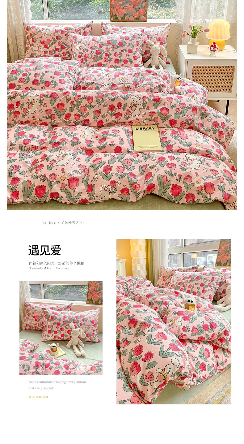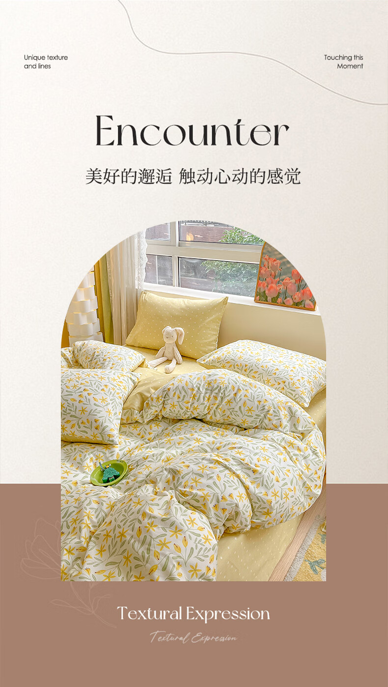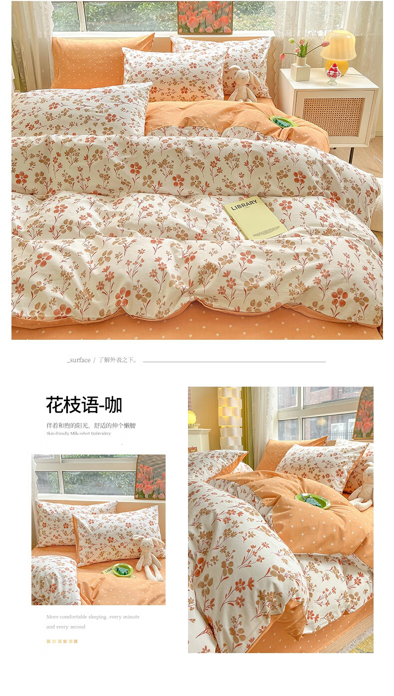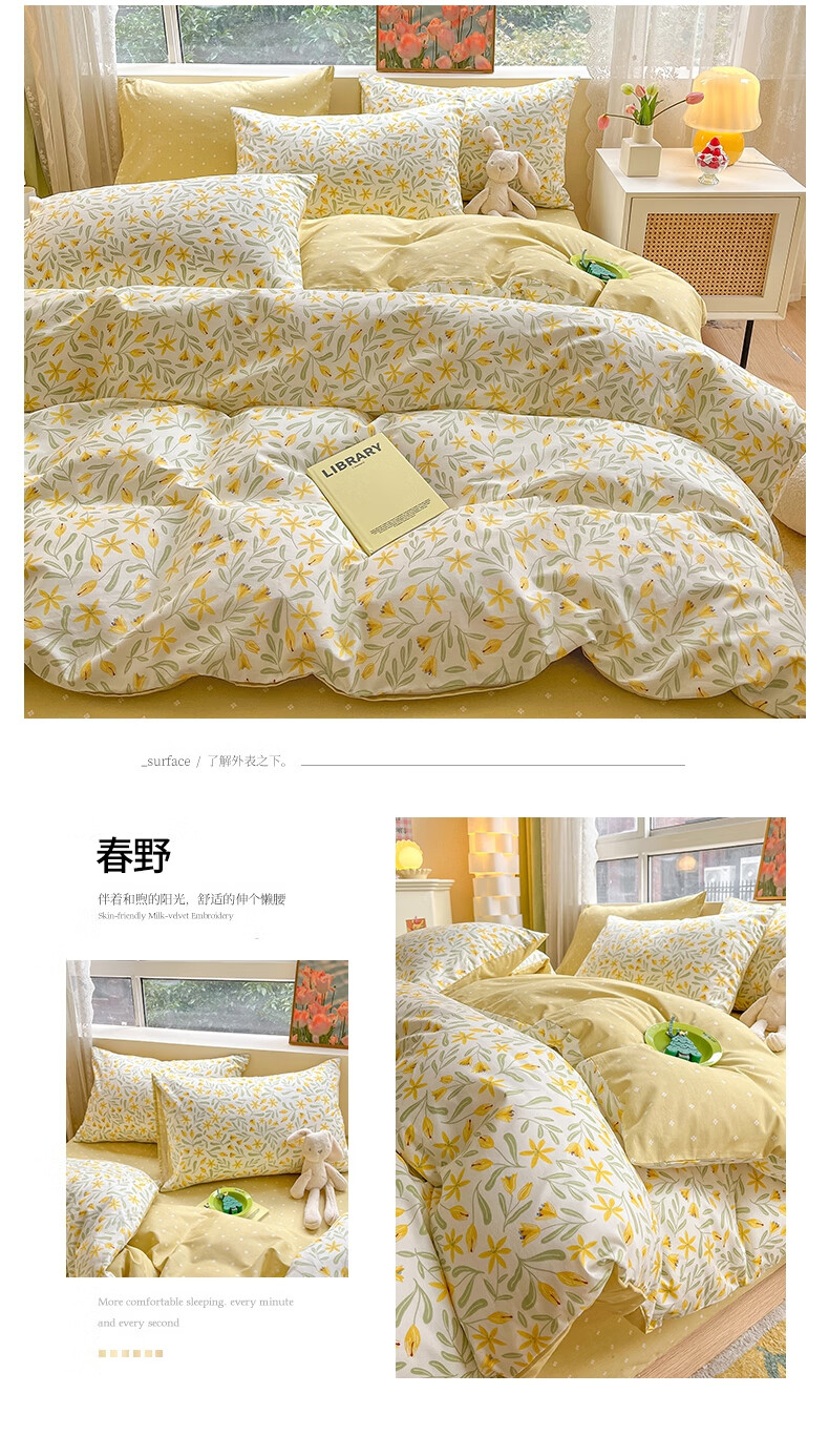 Mercury Series Home Textiles 100 Pure Cotton Four-piece Set 180 Count Xinjiang Combed Cotton Floral Bedroom Sheet Quilt Cover Sheet Fitted Style Bed Use 1.8m Sheet Style Four-piece Set