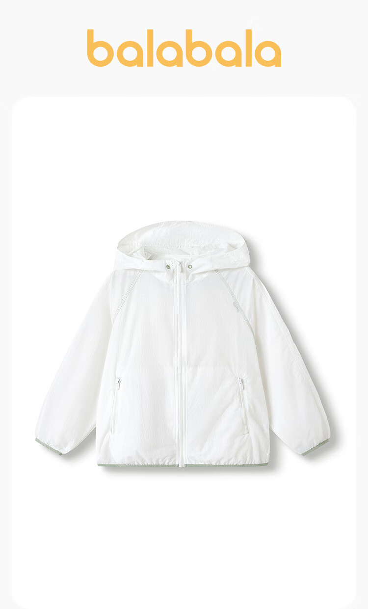 Balabala children's clothing, children's sun protection clothing, boys' summer thin skin clothing, medium and large children's hooded fashionable and portable off-white 10302 165