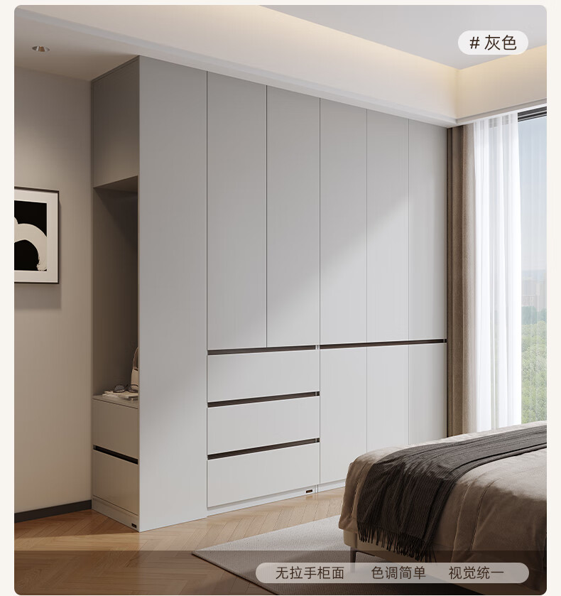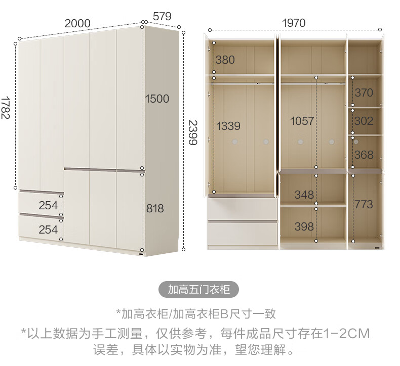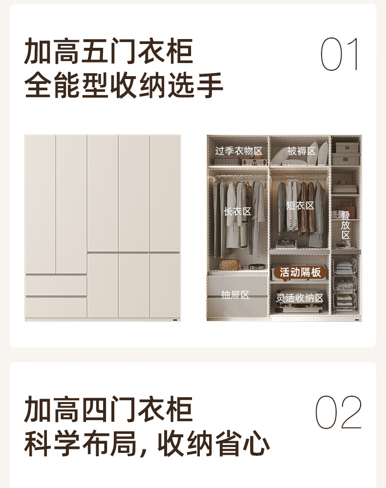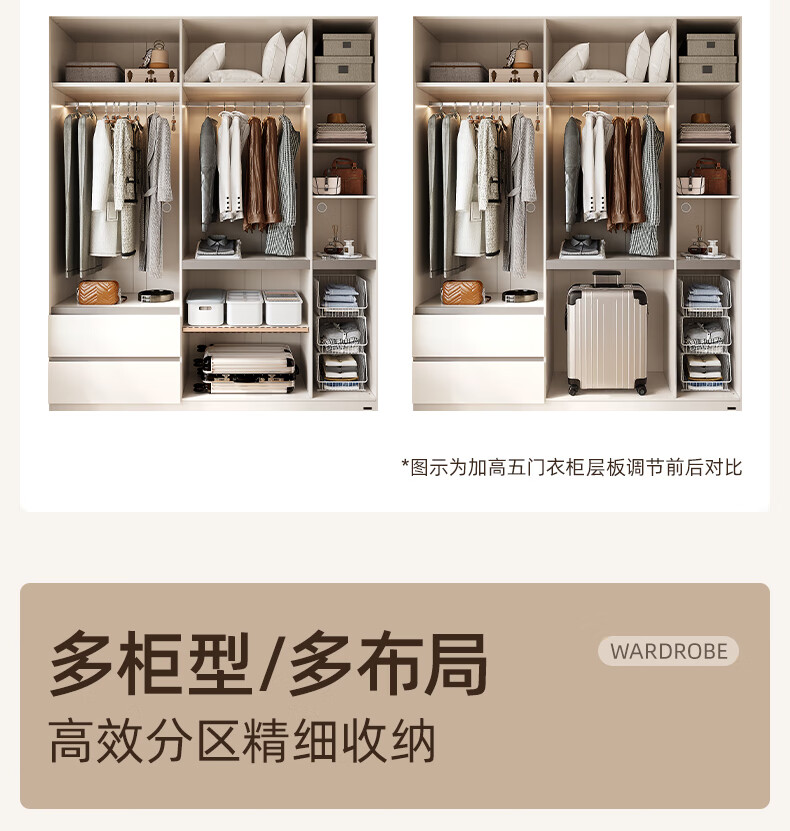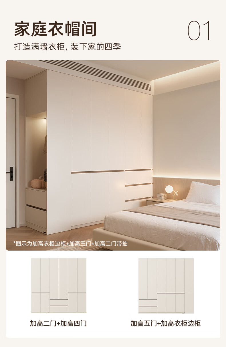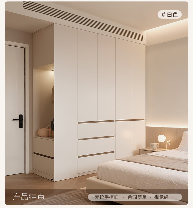 Quanyou Home Modern Simple Floor-to-ceiling Large Wardrobe Home Bedroom Segmented Wardrobe Side Cabinet Combination White 2*2.4m | Five-door Wardrobe Comparable to Customization + Built-in Sensor Light + Two-Color Optional
