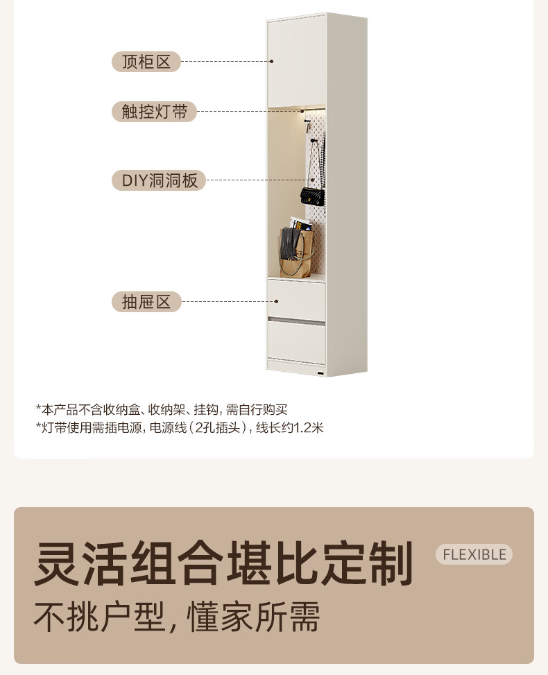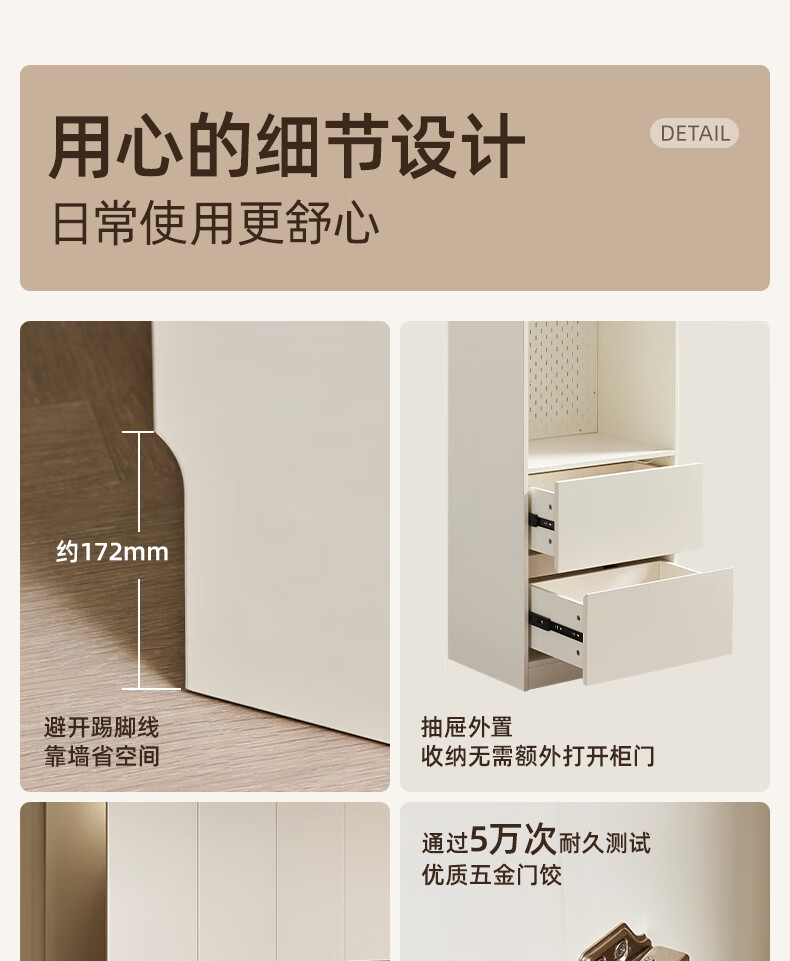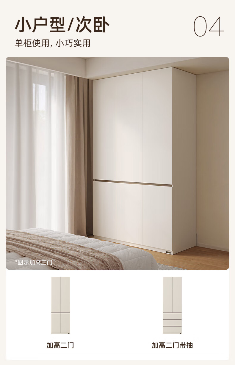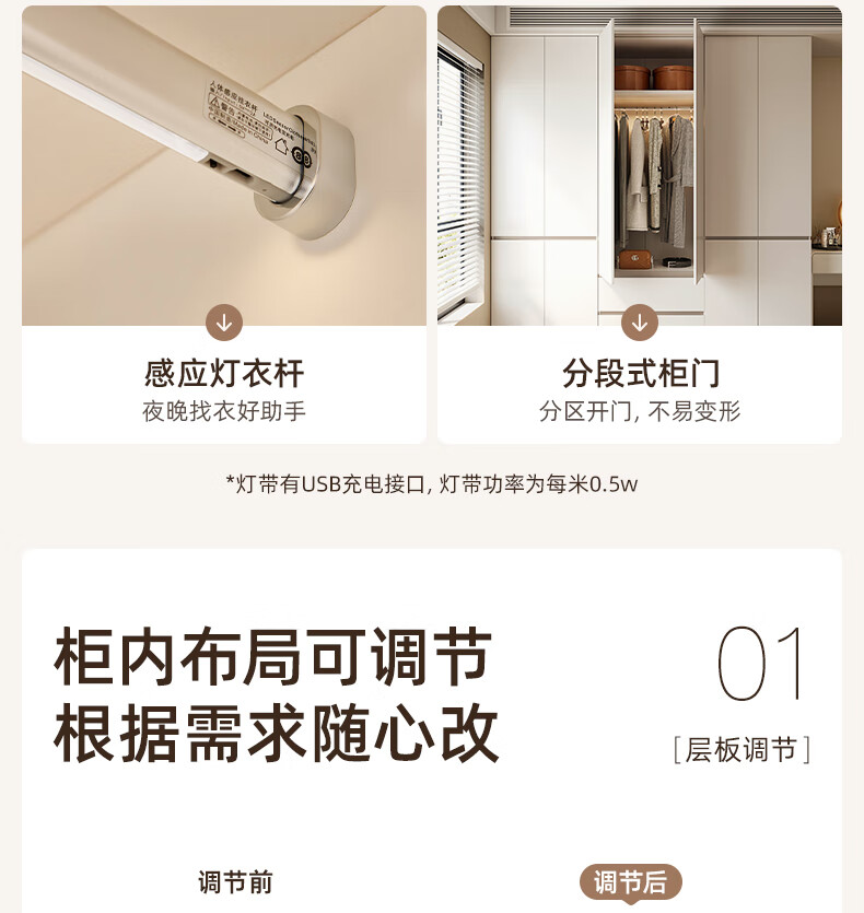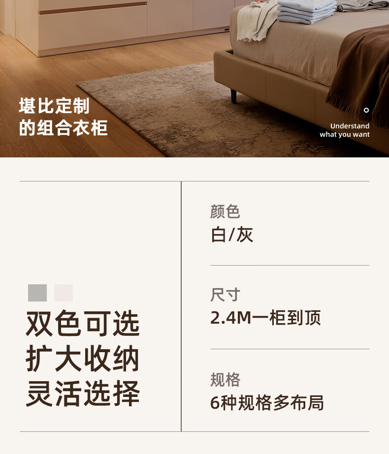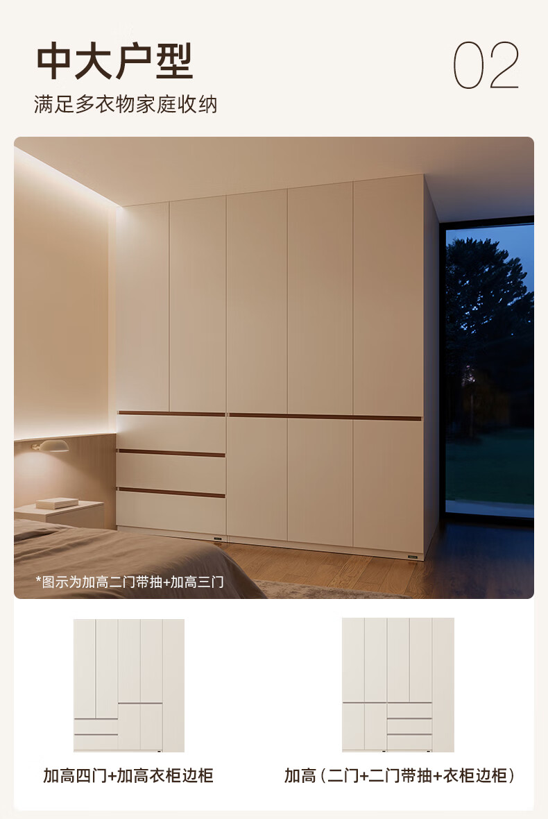 Quanyou Home Modern Simple Floor-to-ceiling Large Wardrobe Home Bedroom Segmented Wardrobe Side Cabinet Combination White 2*2.4m | Five-door Wardrobe Comparable to Customization + Built-in Sensor Light + Two-Color Optional