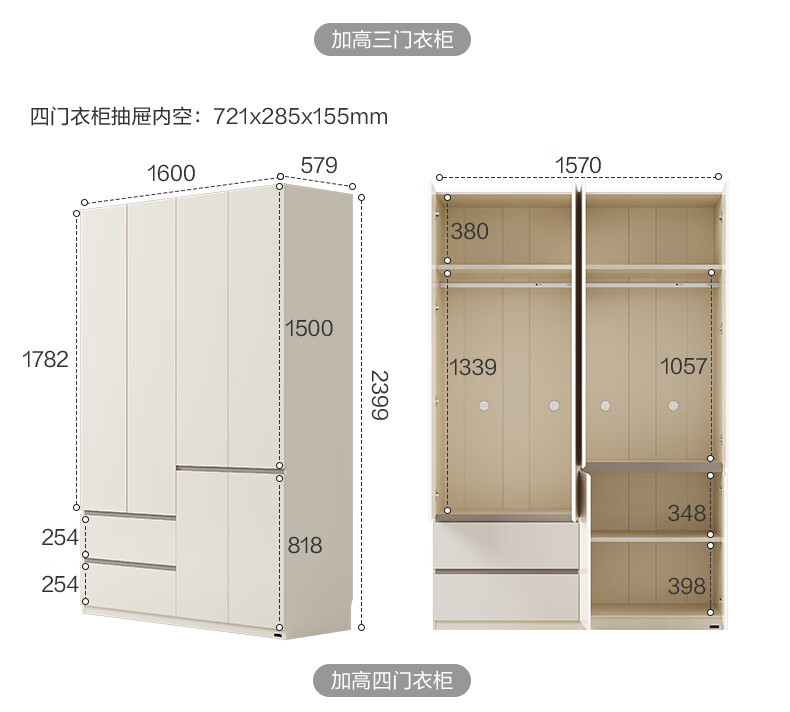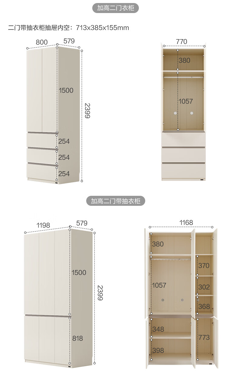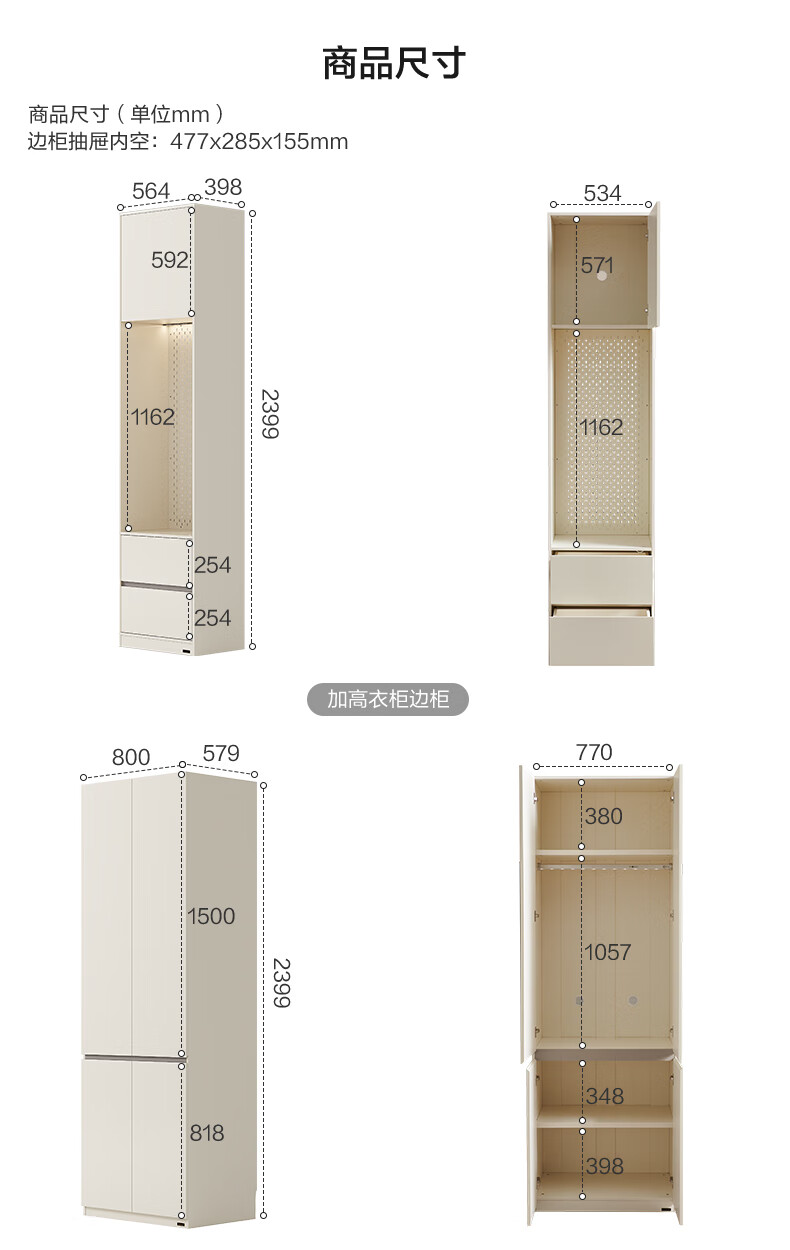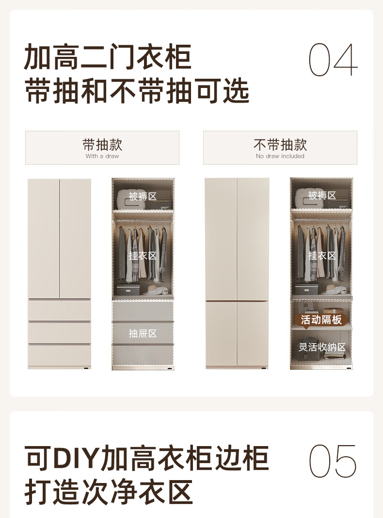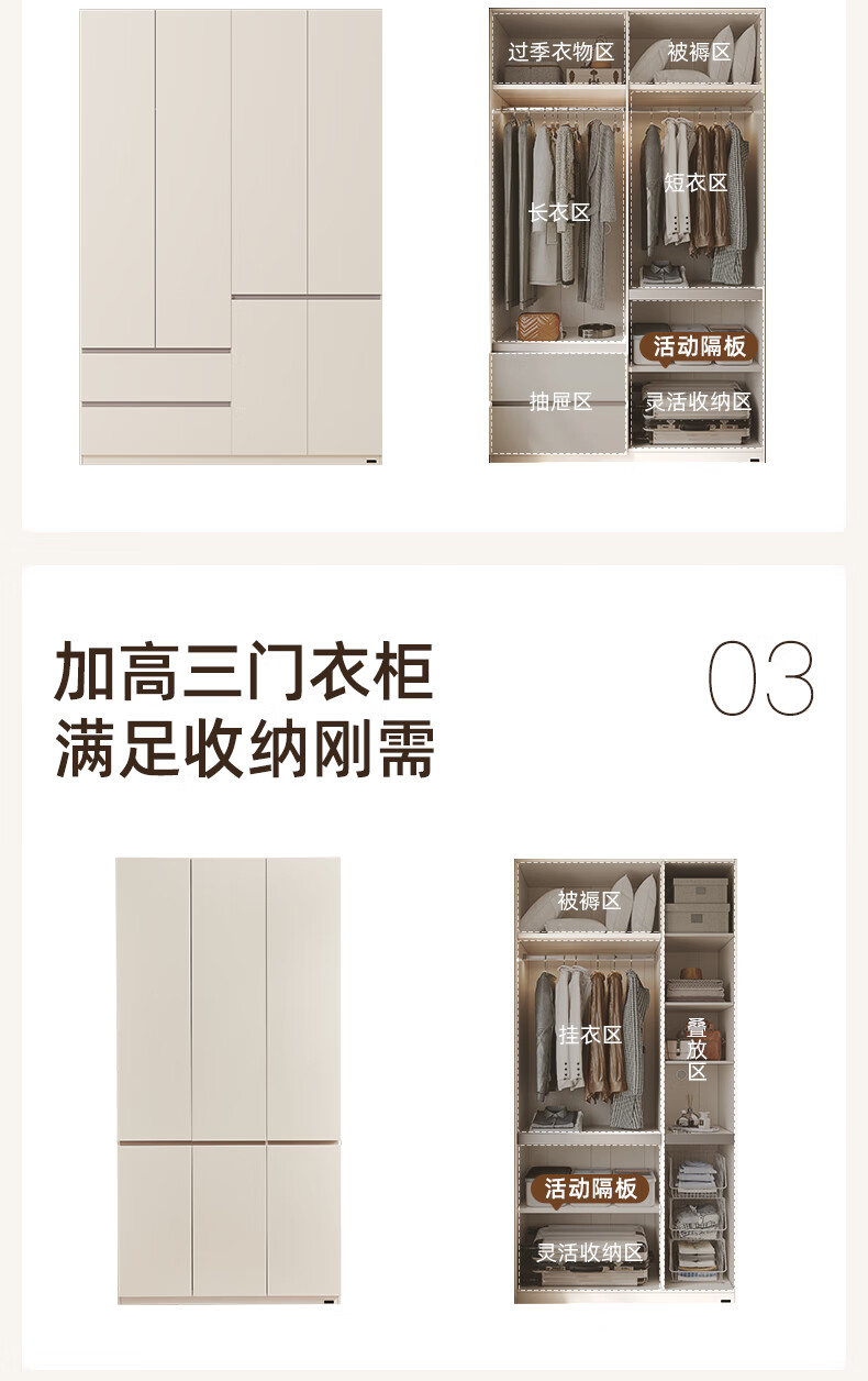 Quanyou Home Modern Simple Floor-to-ceiling Large Wardrobe Home Bedroom Segmented Wardrobe Side Cabinet Combination White 2*2.4m | Five-door Wardrobe Comparable to Customization + Built-in Sensor Light + Two-Color Optional