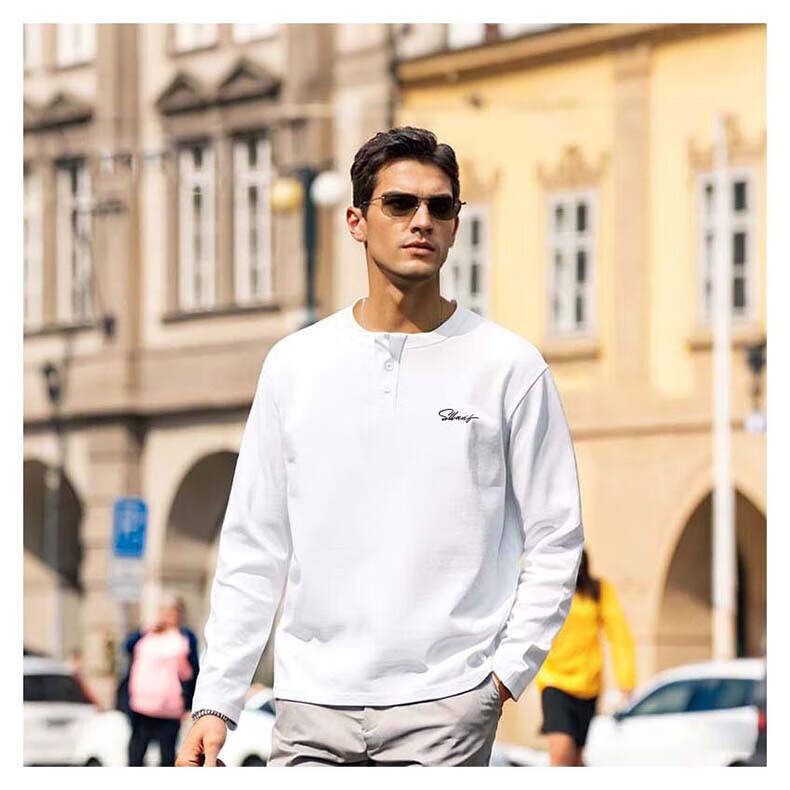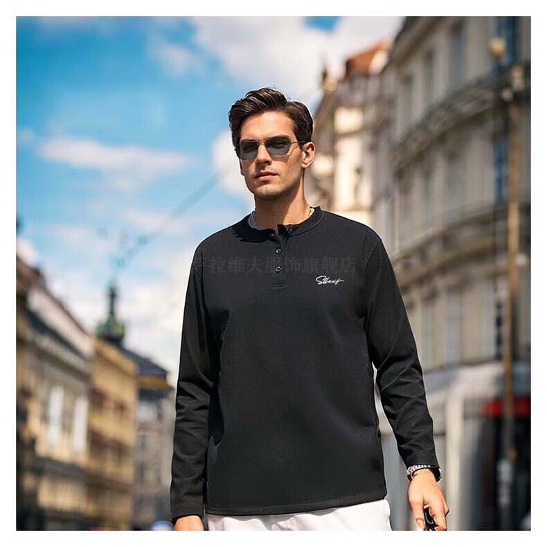 SLLAVIF spring American retro khaki Henry collar long-sleeved T-shirt men's casual slim inner T-shirt bottoming shirt white XL recommended 130-150Jin Jin equals 0.5 kg