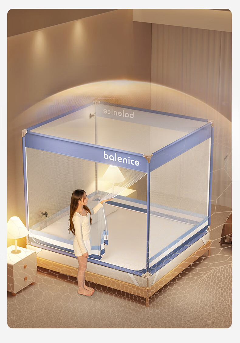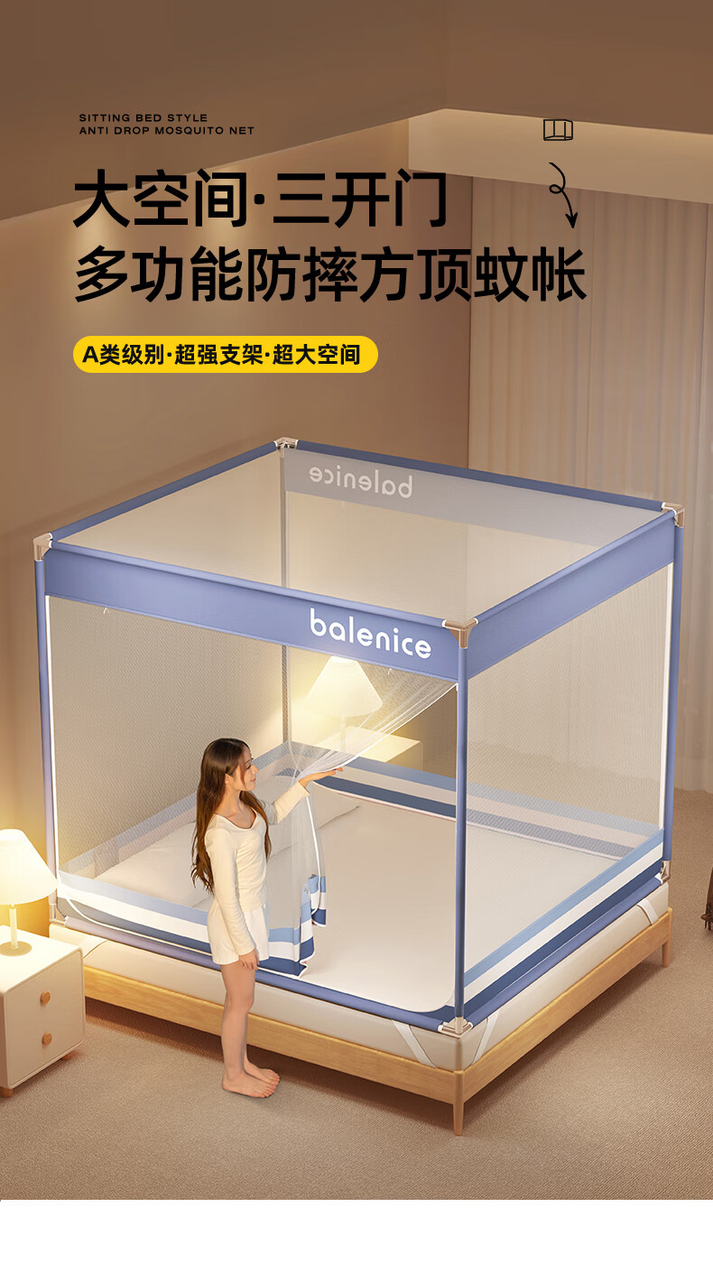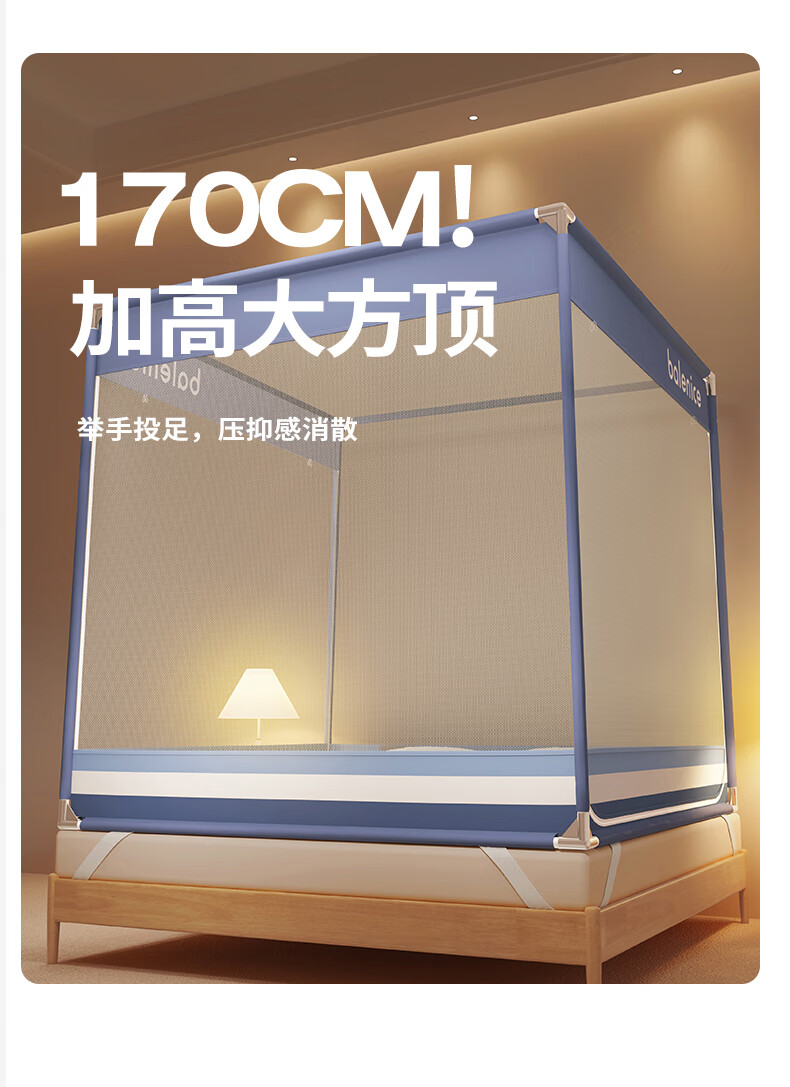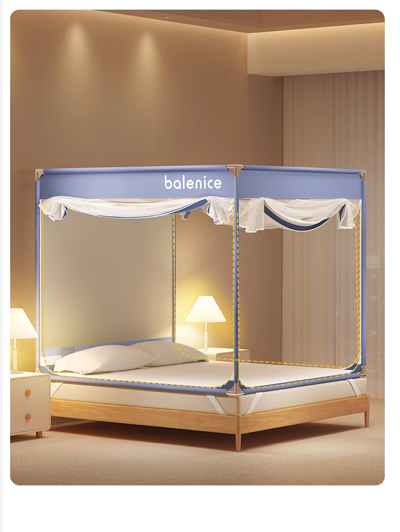 Yalu Class A Anti-fall Mosquito Net 1.2x2m Baby and Child Home Bedroom Mosquito Net Frame Large Bed 1.5U Type Thickened Bracket Three-Door Model - Light Year Blue Class A Net Yarn 1.8m Bed (Width 180*Length 200cm*Height 170cm)