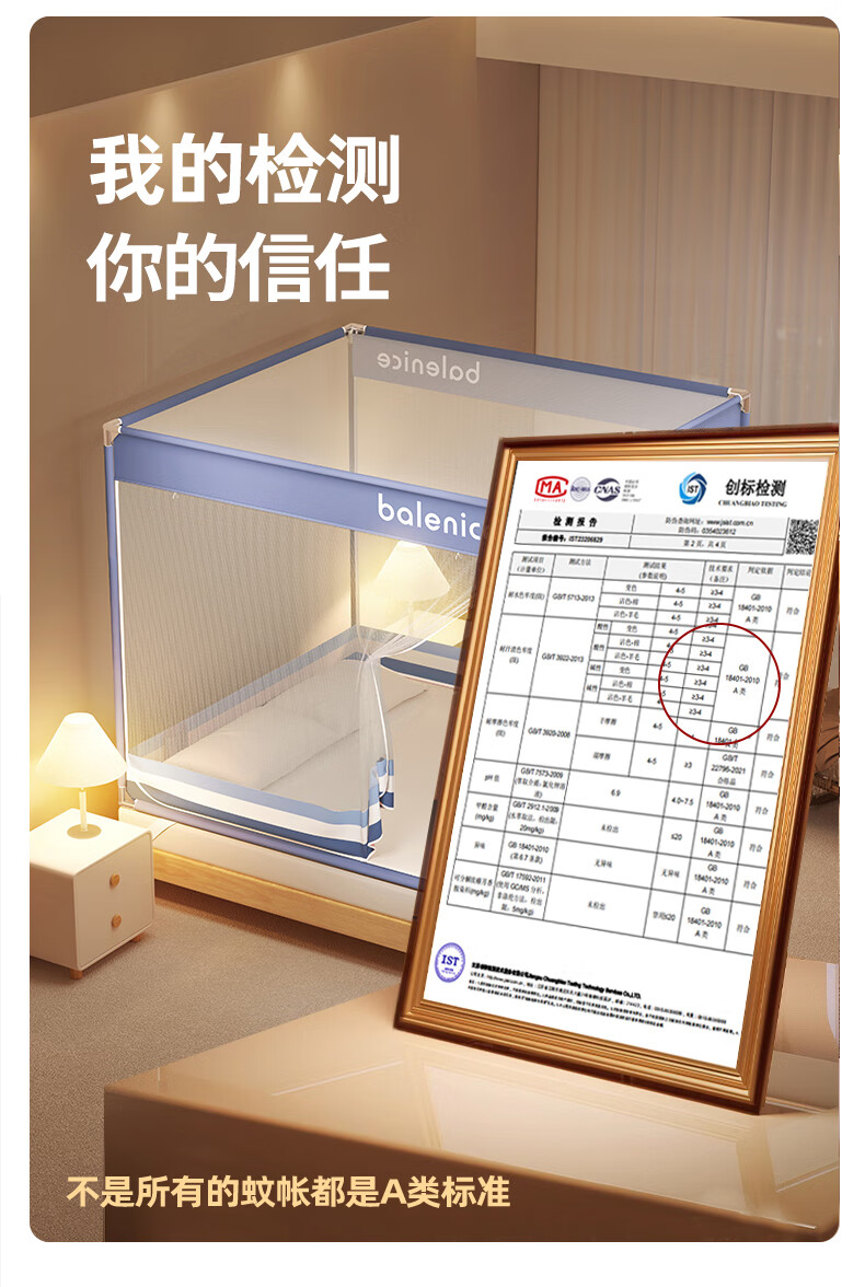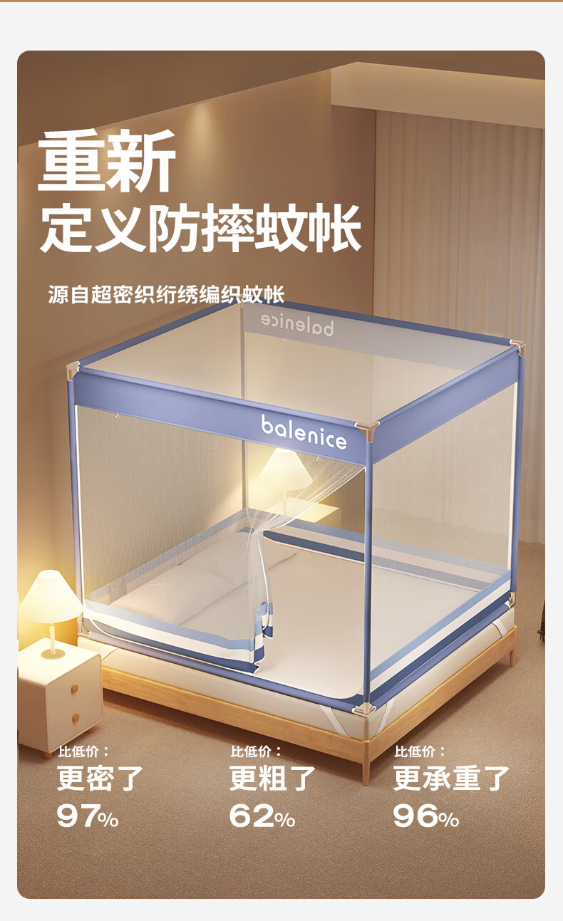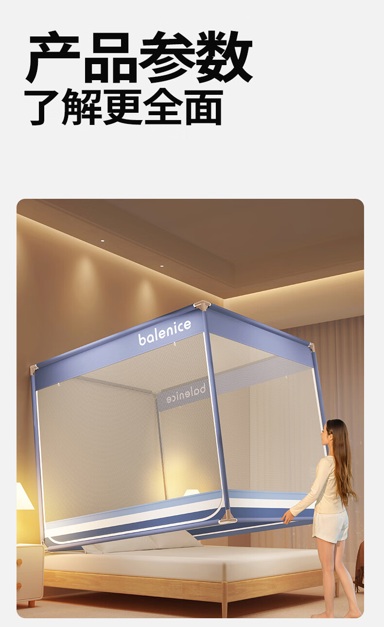 Yalu Class A Anti-fall Mosquito Net 1.2x2m Baby and Child Home Bedroom Mosquito Net Frame Large Bed 1.5U Type Thickened Bracket Three-Door Model - Light Year Blue Class A Net Yarn 1.8m Bed (Width 180*Length 200cm*Height 170cm)