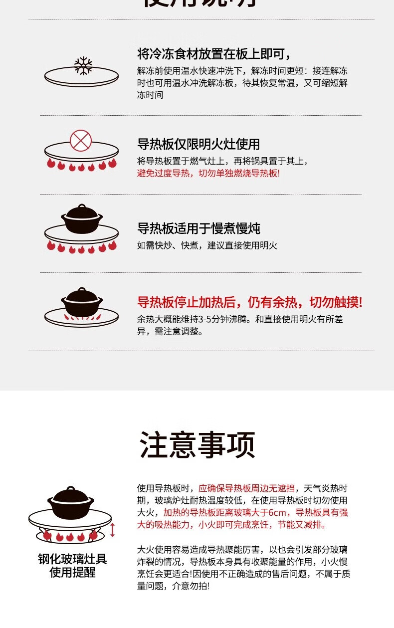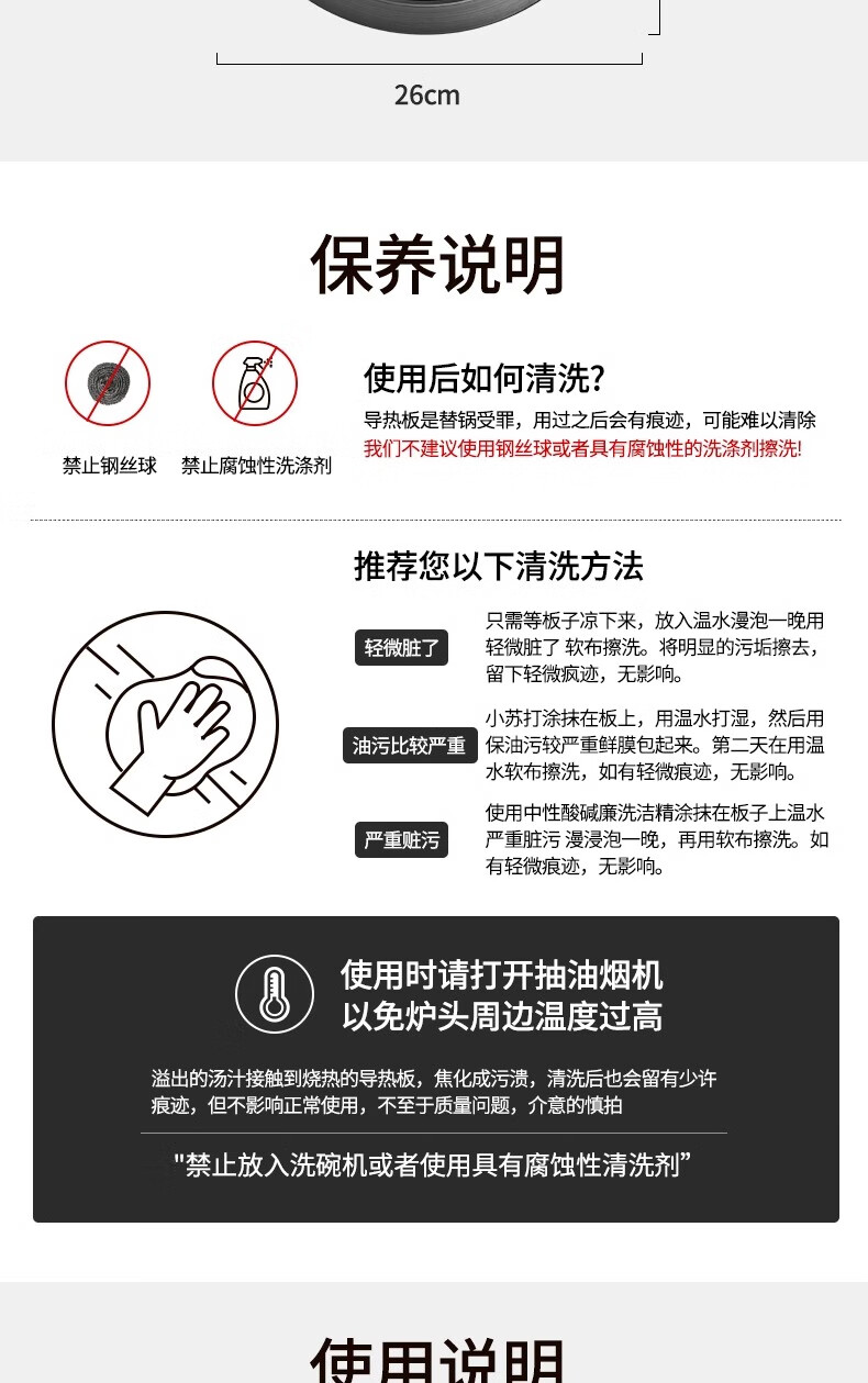 Xuanye removable heat conduction plate defrost gas gas stove thawing meat heat conduction plate heat insulation plate stove anti-burning black pad removable heat conduction thawing plate 26cm