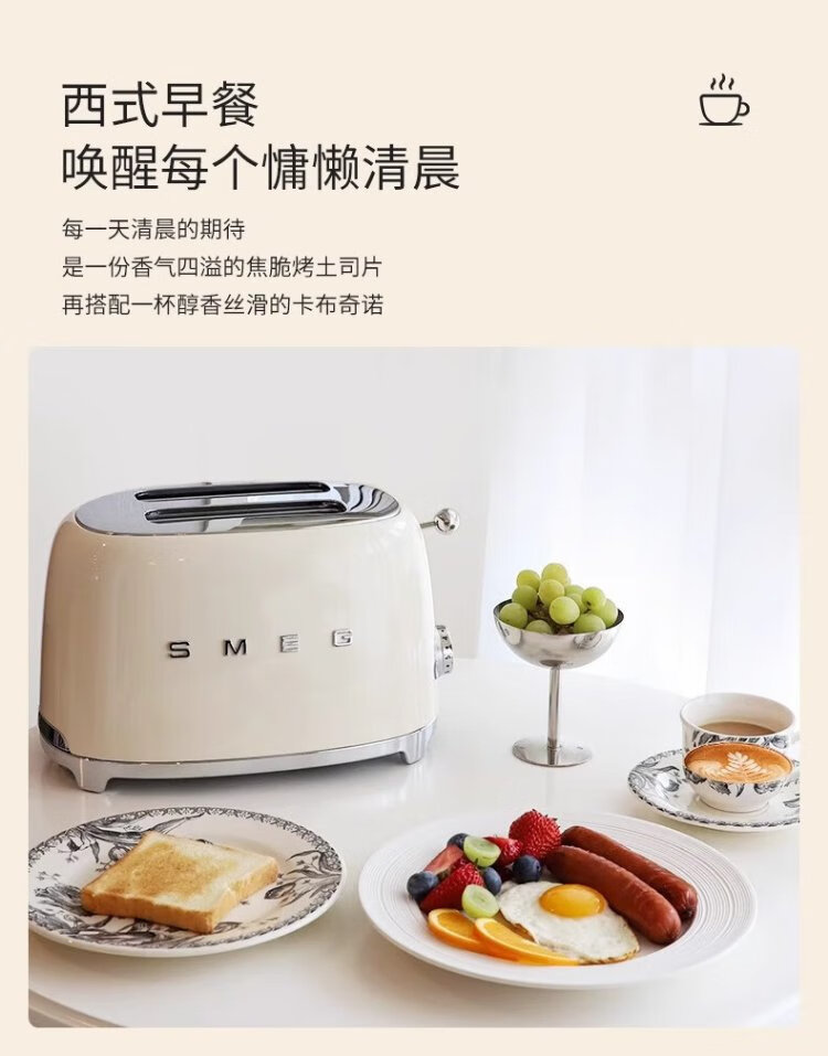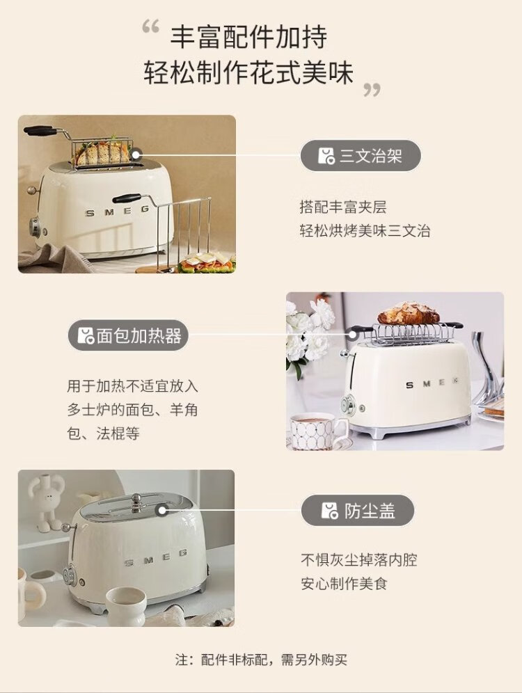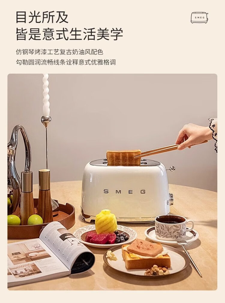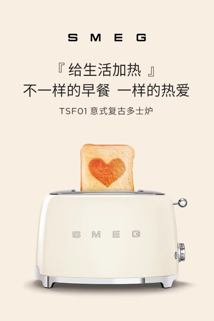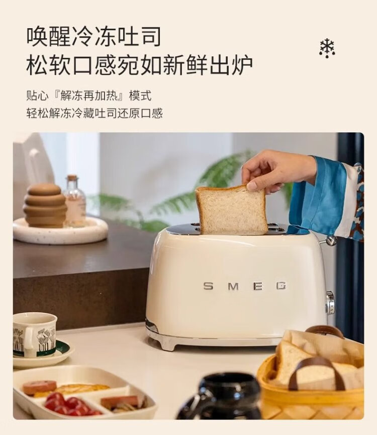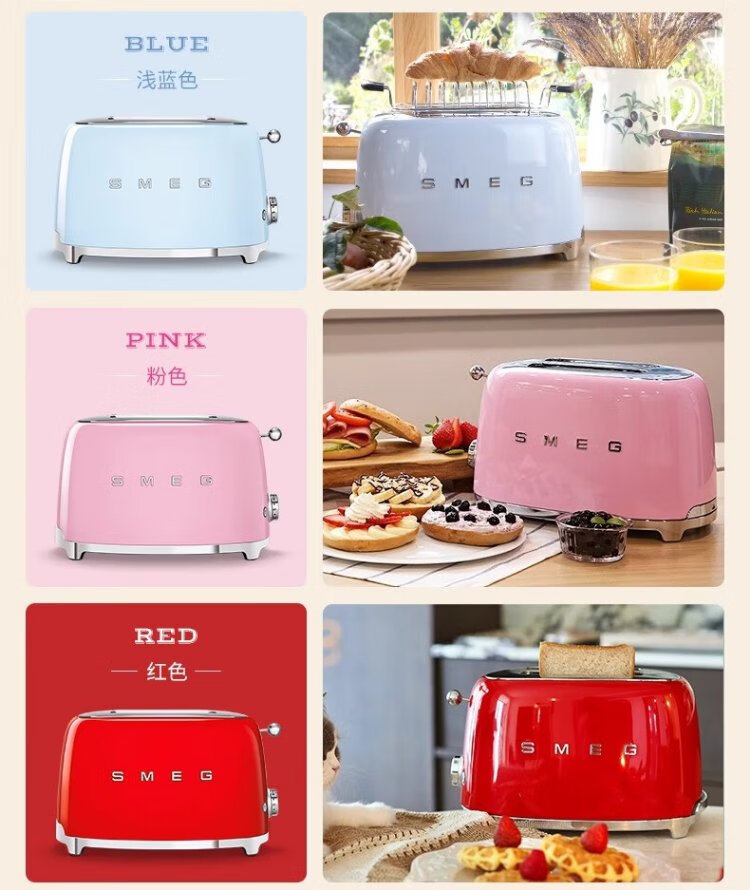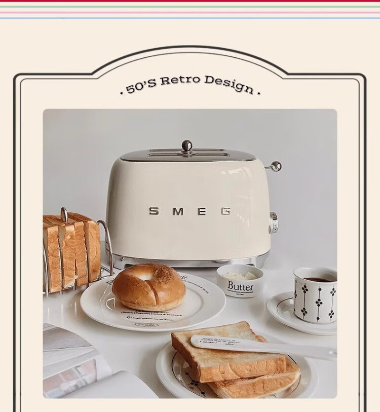 SMEG/Smeg retro toaster breakfast machine sandwich toast toaster multi-functional household small housewarming birthday gift official authentic 6-speed baking TSF01 red (two-piece)