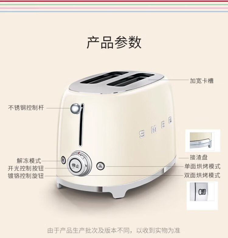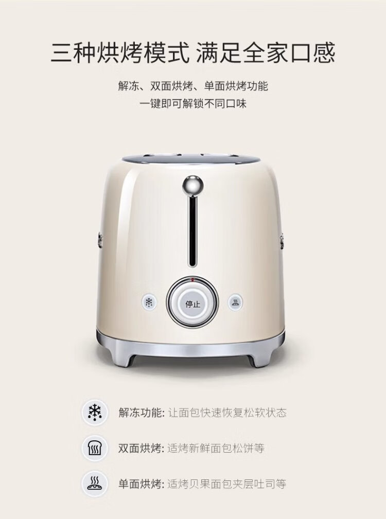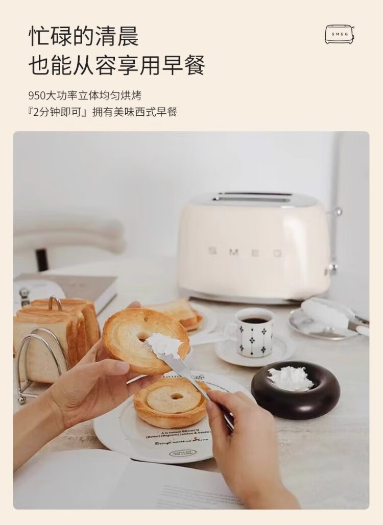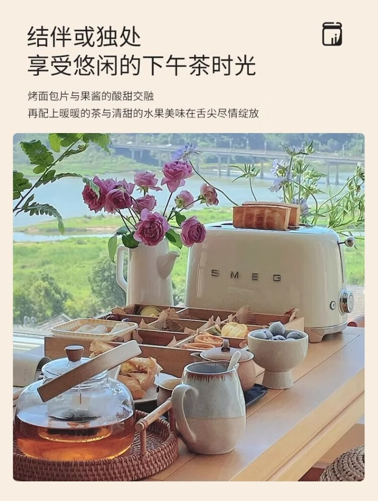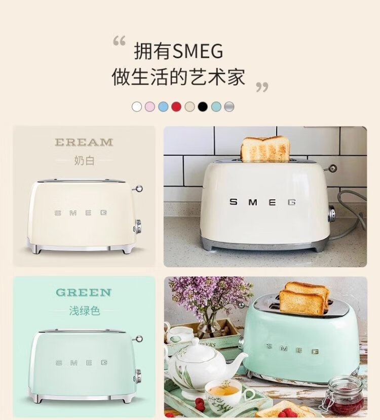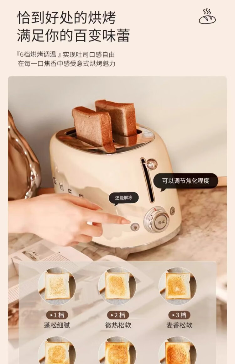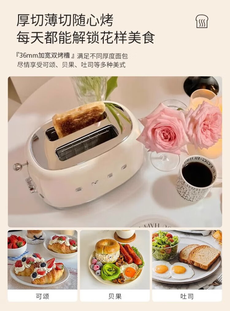 SMEG/Smeg retro toaster breakfast machine sandwich toast toaster multi-functional household small housewarming birthday gift official authentic 6-speed baking TSF01 red (two-piece)