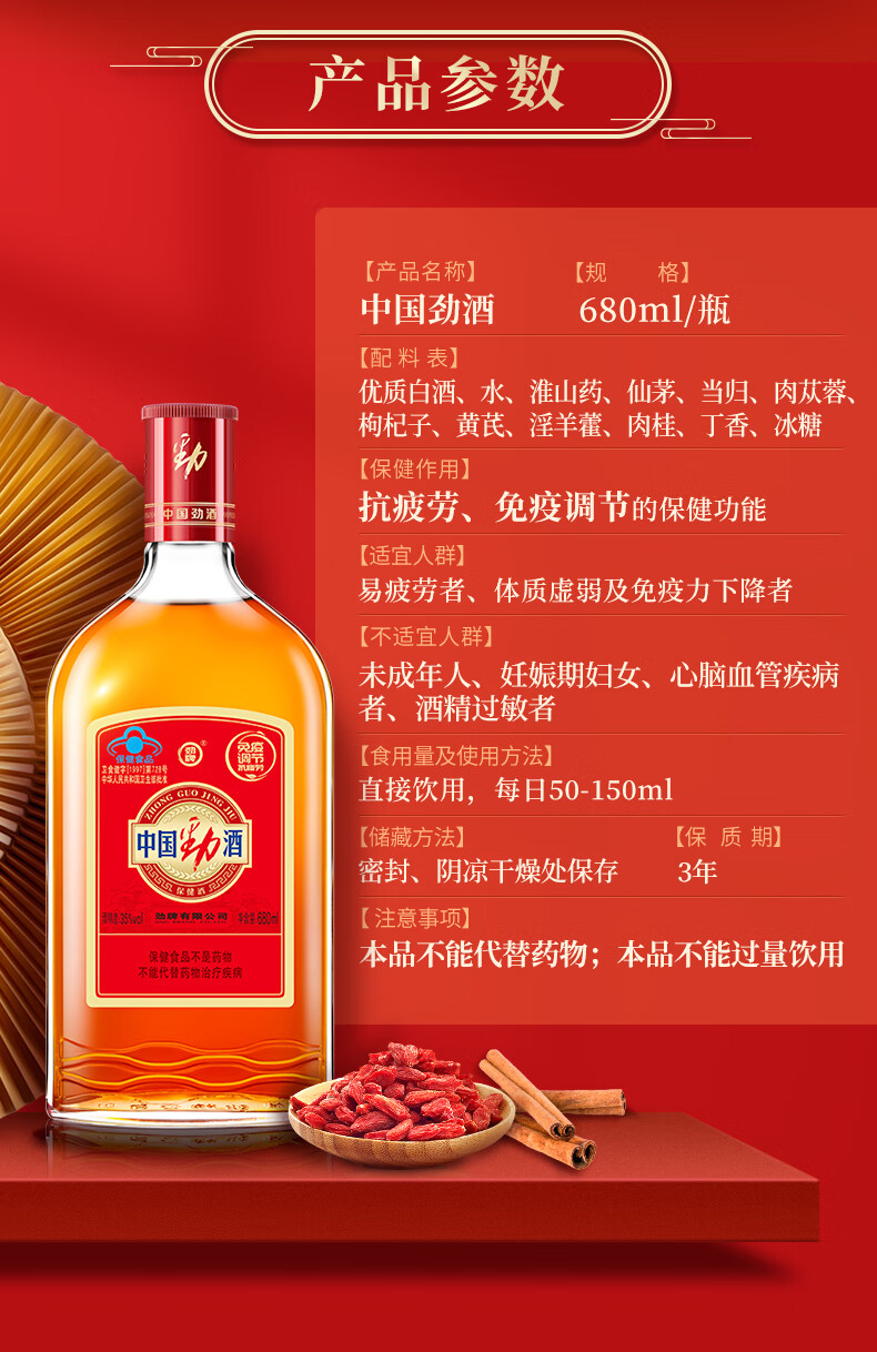Jin Brand Jinjiu Chinese Jinjiu 35% 680ml*6 bottles, whole box without gift bag, holiday gift for elders, 35% 680mL 1 bottle, Chinese Jinjiu (early taster)