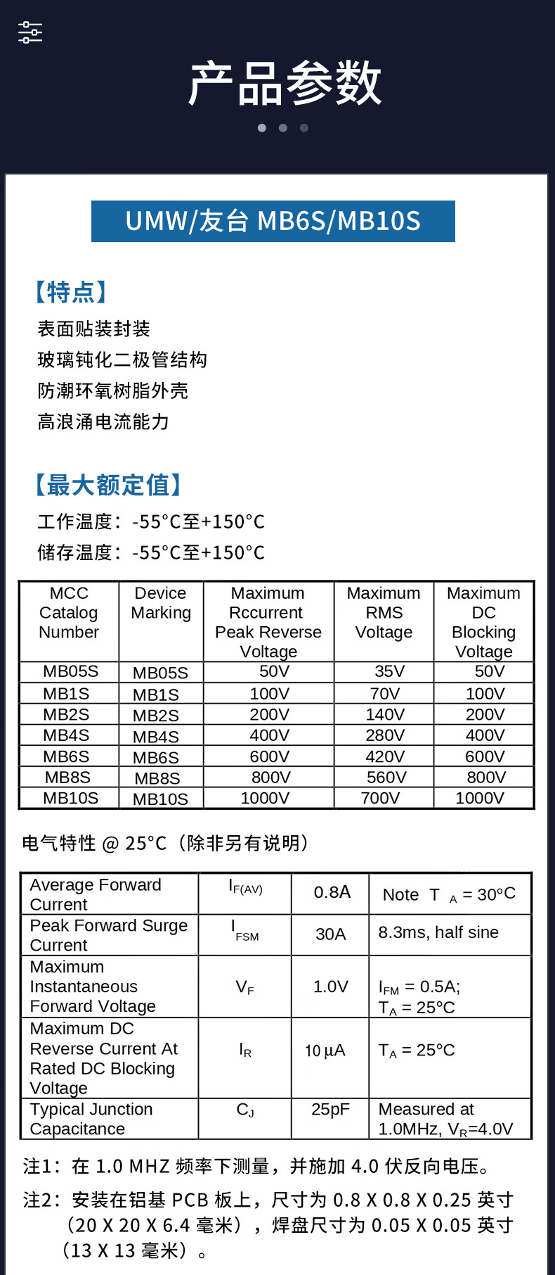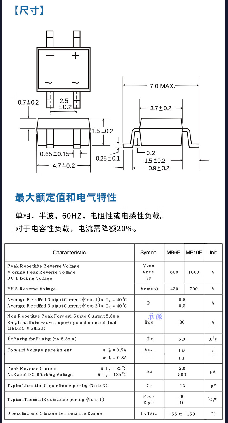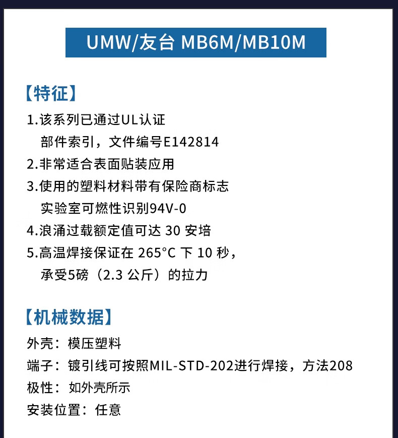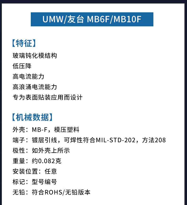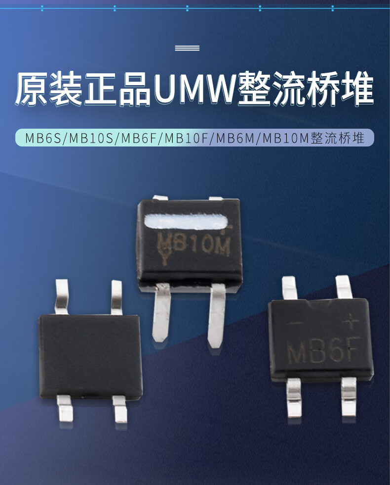 Original genuine UMW MB6S/MB10S/MB6F/MB10F/MB6M/MB10M rectifier bridge stack UMW/Friend Taiwan MB10F (0.8A) patch (20 pieces)