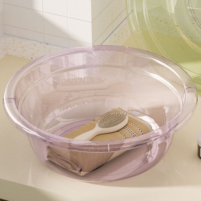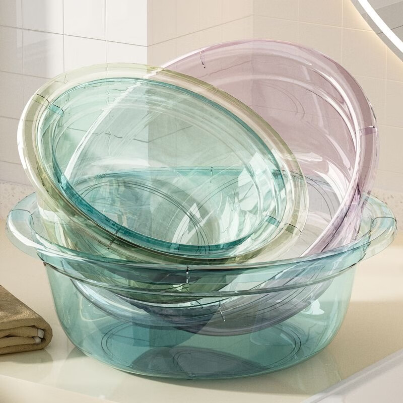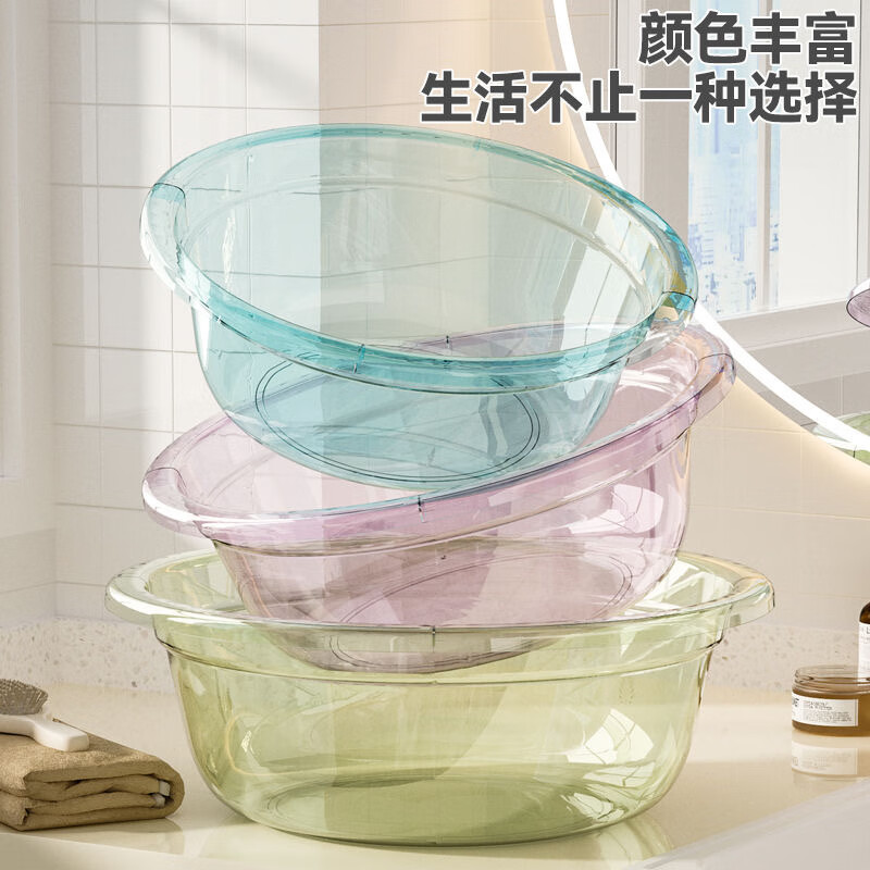 Round thickened washbasin plastic large, medium and small household student dormitory footbath baby small basin food grade glazed blue 1 pack 28cm