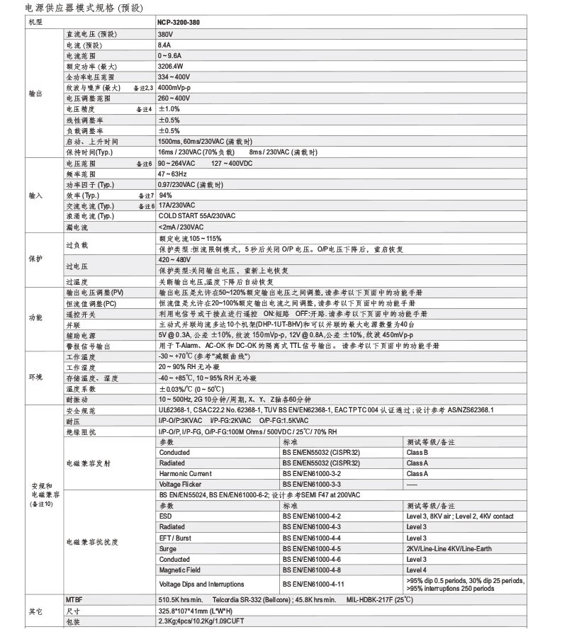 MEAN WELL switching power supply (excluding rack) NCP-3200-380 (1 year maintenance)
