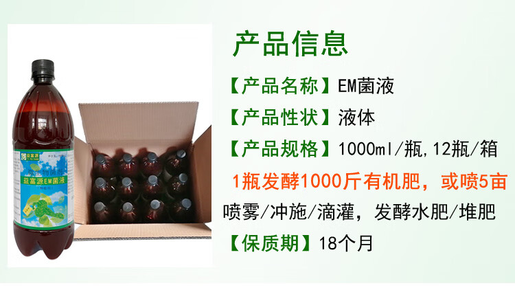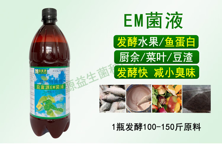 Yifuyuan EM bacterial liquid stock solution rotten fruit fermentation agent peel vegetable leaves kitchen waste water fertilizer organic fertilizer agricultural enzyme fermentation bacterial agent 1 bottle of EM bacterial liquid (1000ml)