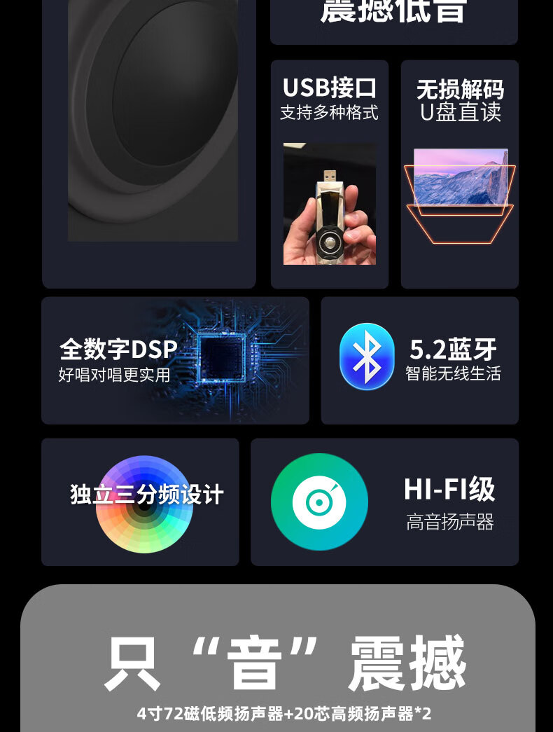 Beide Beide BD-H0493 High Power Outdoor Square Dance Bluetooth Portable Speaker Portable Bluetooth K Song Heavy Bass Multi-Functional Playing and Singing Instrument Speaker BD-H0493