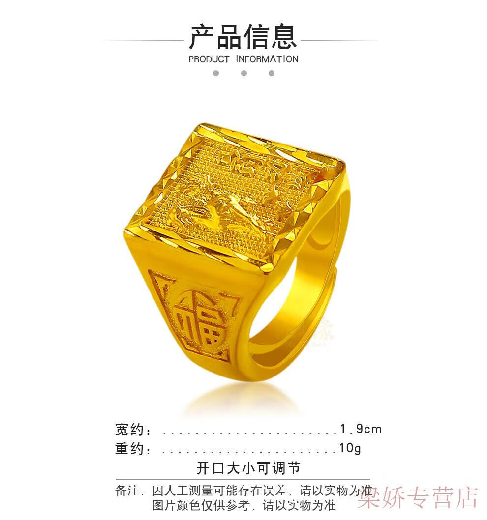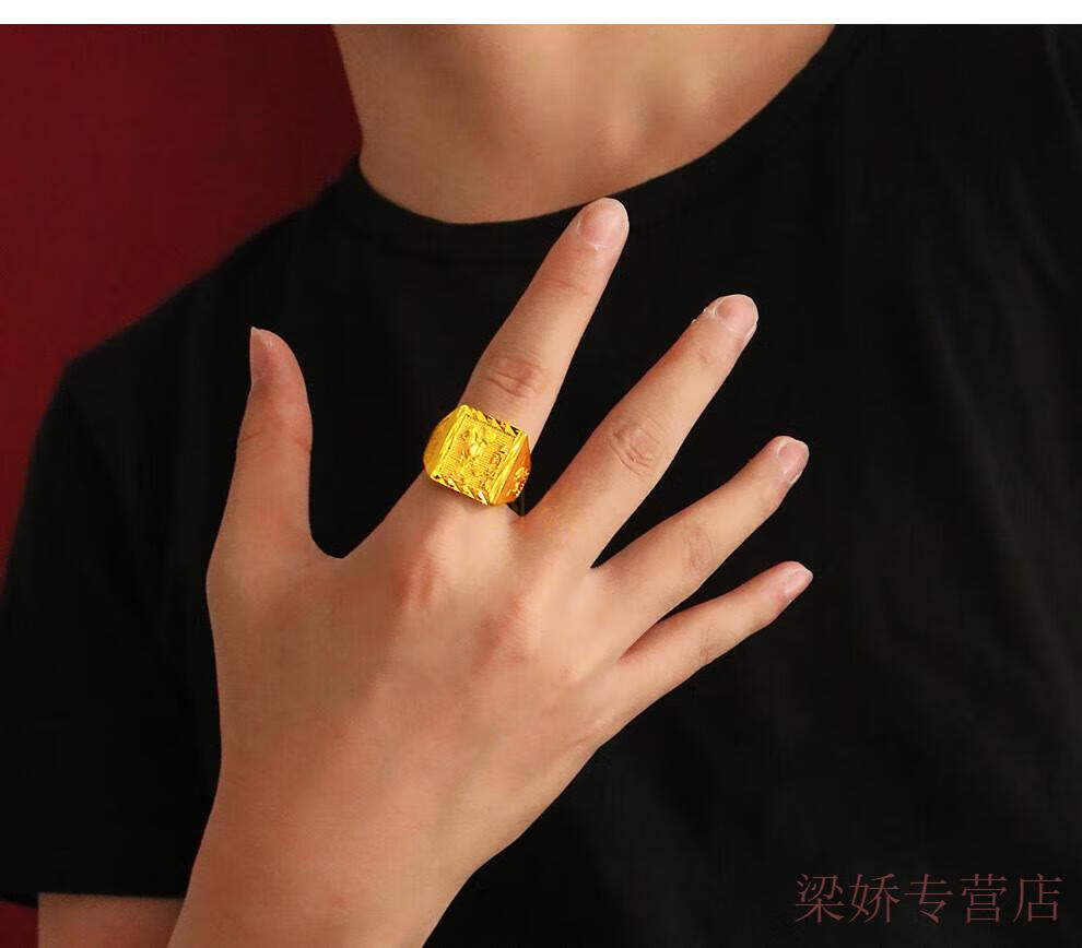 GRAYCEWODY Lao Phoenix 999 gold pure silver ethnic style classic Vietnamese men's gold-plated silver ring immediately succeeds wide-faced live high-end immediately succeeds Lao Phoenix gold store model
