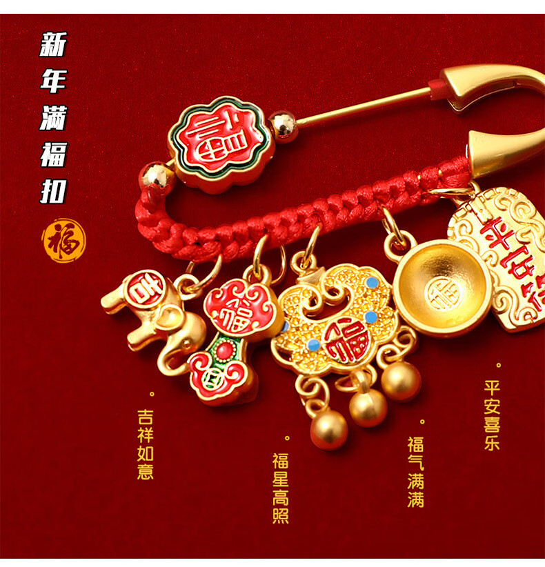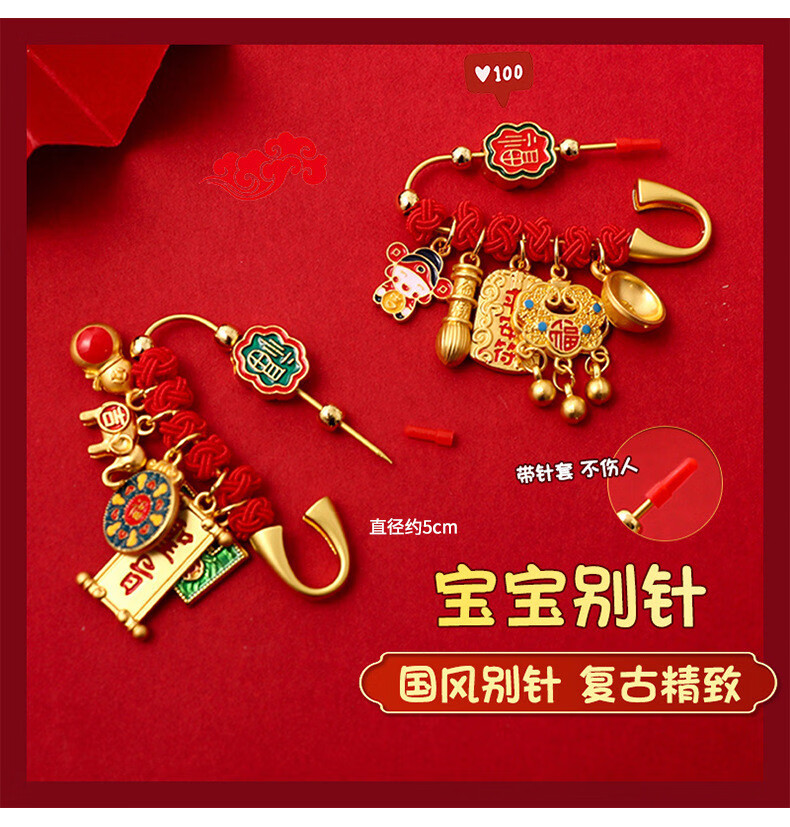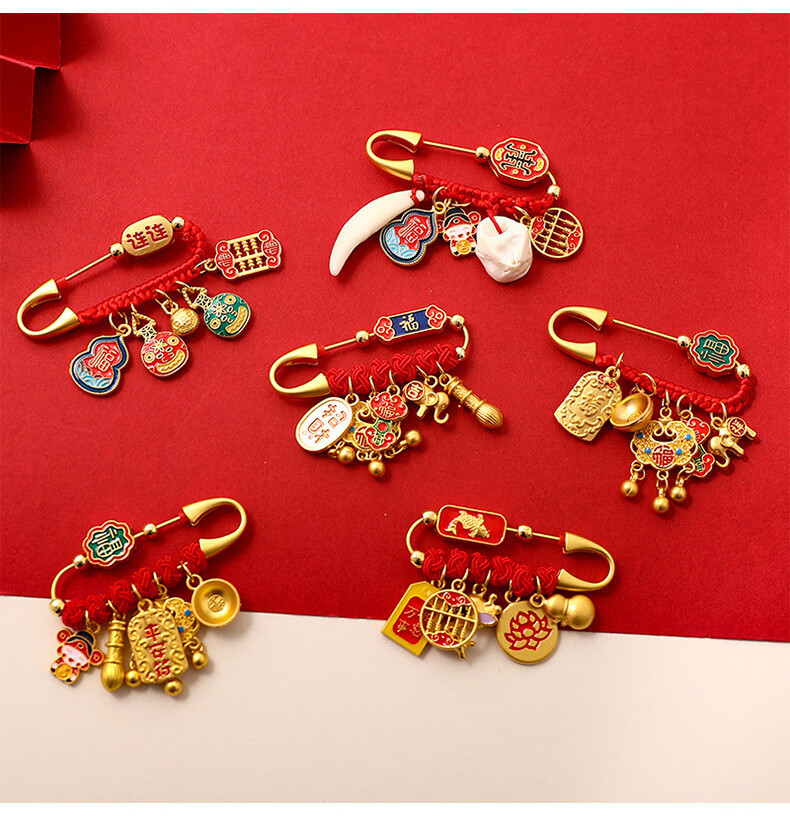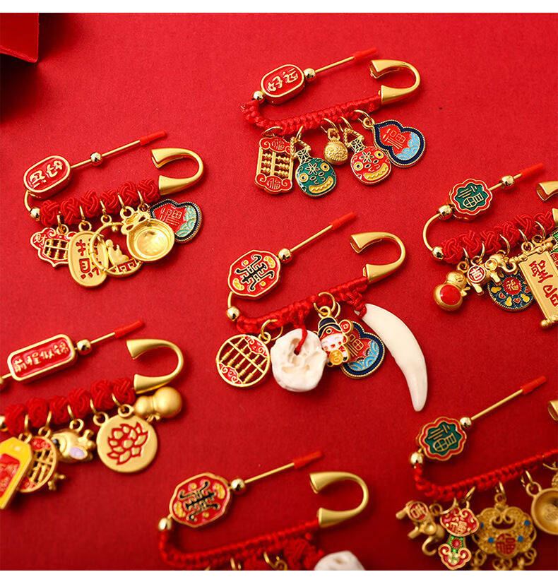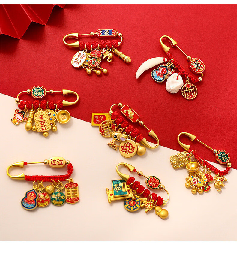 YWZR Newborn Infants and Toddlers Pregnancy Safe Mom Gold Color Shockproof Baby Anti-Frightening Jumping Pin Ping An Fu