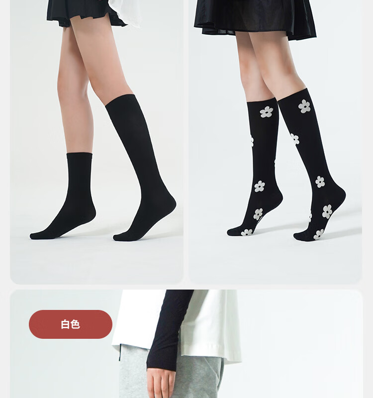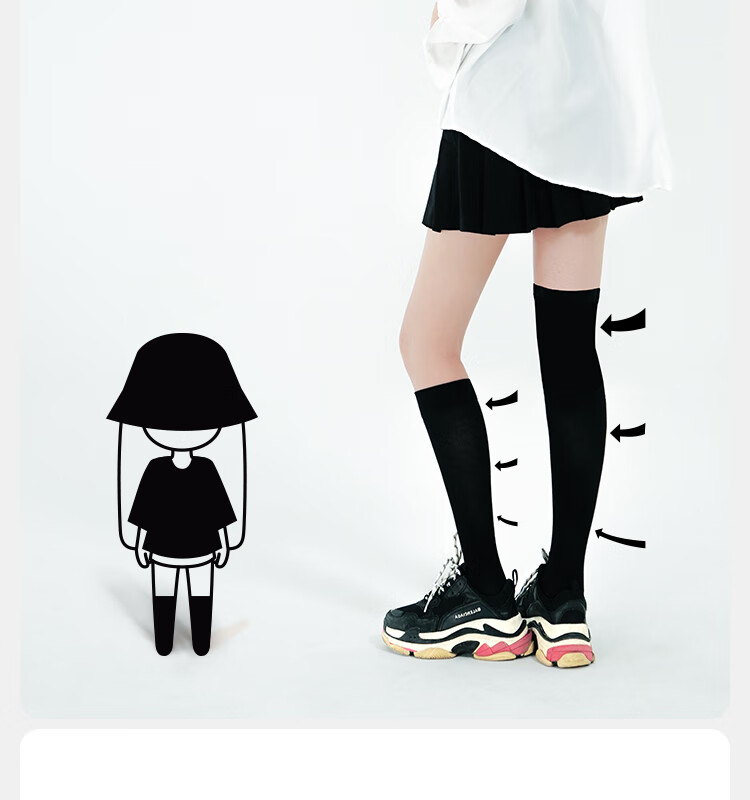 Miss Huang 2 pairs of segmented pressure calf socks for women in spring and summer thin mid-calf socks JK socks over the knee long tube 2 pairs of white 35cm + black 35cm one size fits all 2 pairs